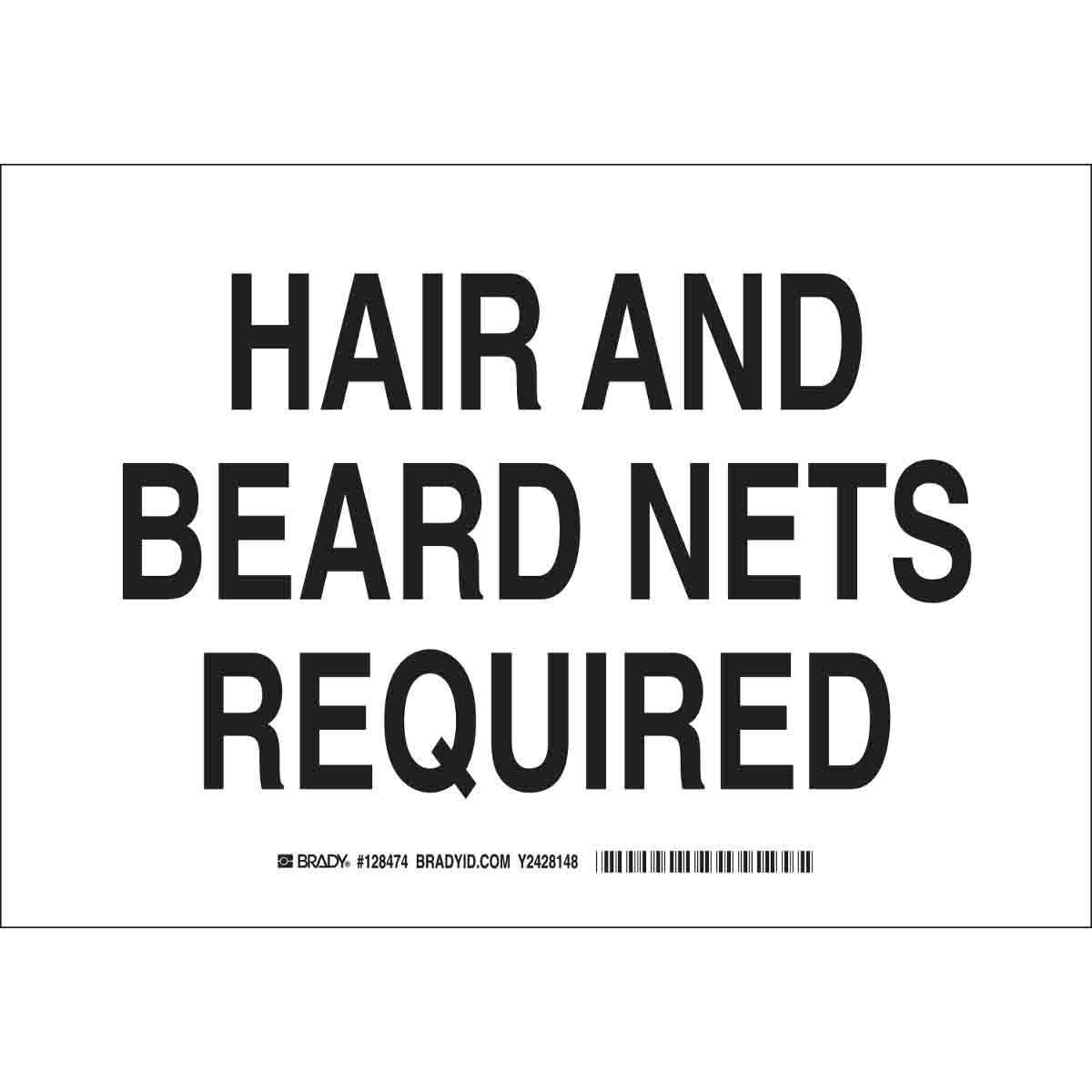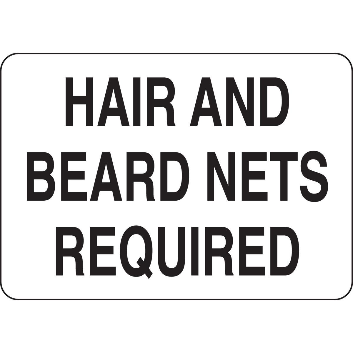 - Height:7 inLegend:HAIR AND BEARD NETS REQUIREDLegend Style:TextLegend/Background Color:Black on WhiteMaterial:B-302 PolyesterMounting Type:AdhesiveType:Laminated RectangularWidth:10 in