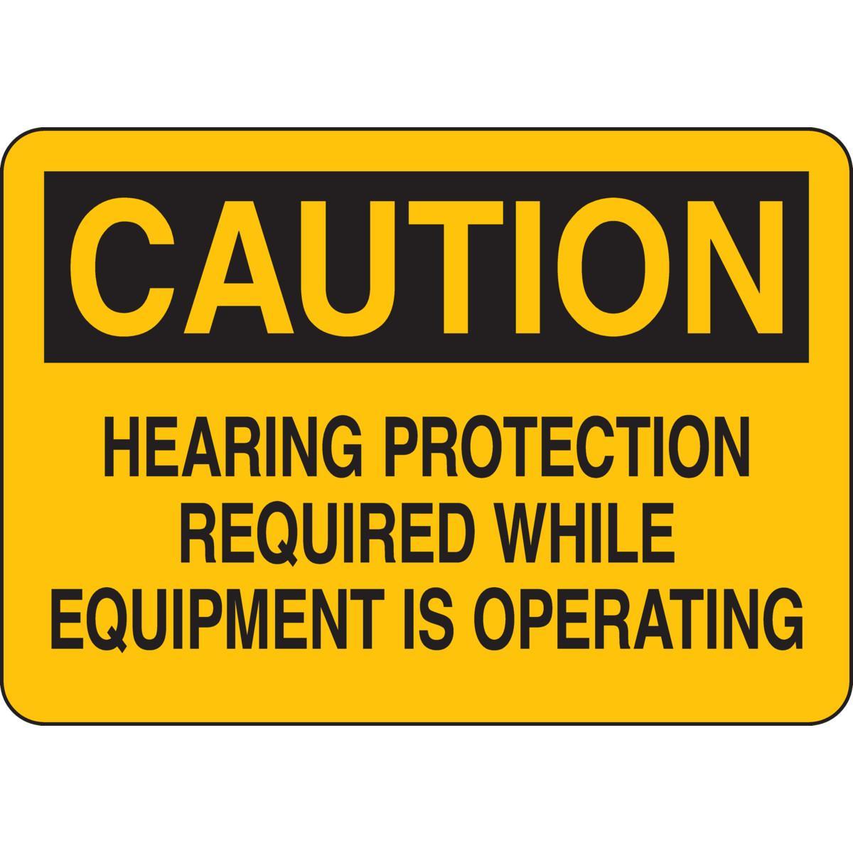 - Header:CAUTIONHeight:7 inLegend:HEARING PROTECTION REQUIRED WHILE EQUIPMENT IS OPERATINGLegend Style:TextLegend/Background Color:Black on YellowMaterial:B-555 AluminumMounting Type:FastenedType:RectangularWidth:10 in