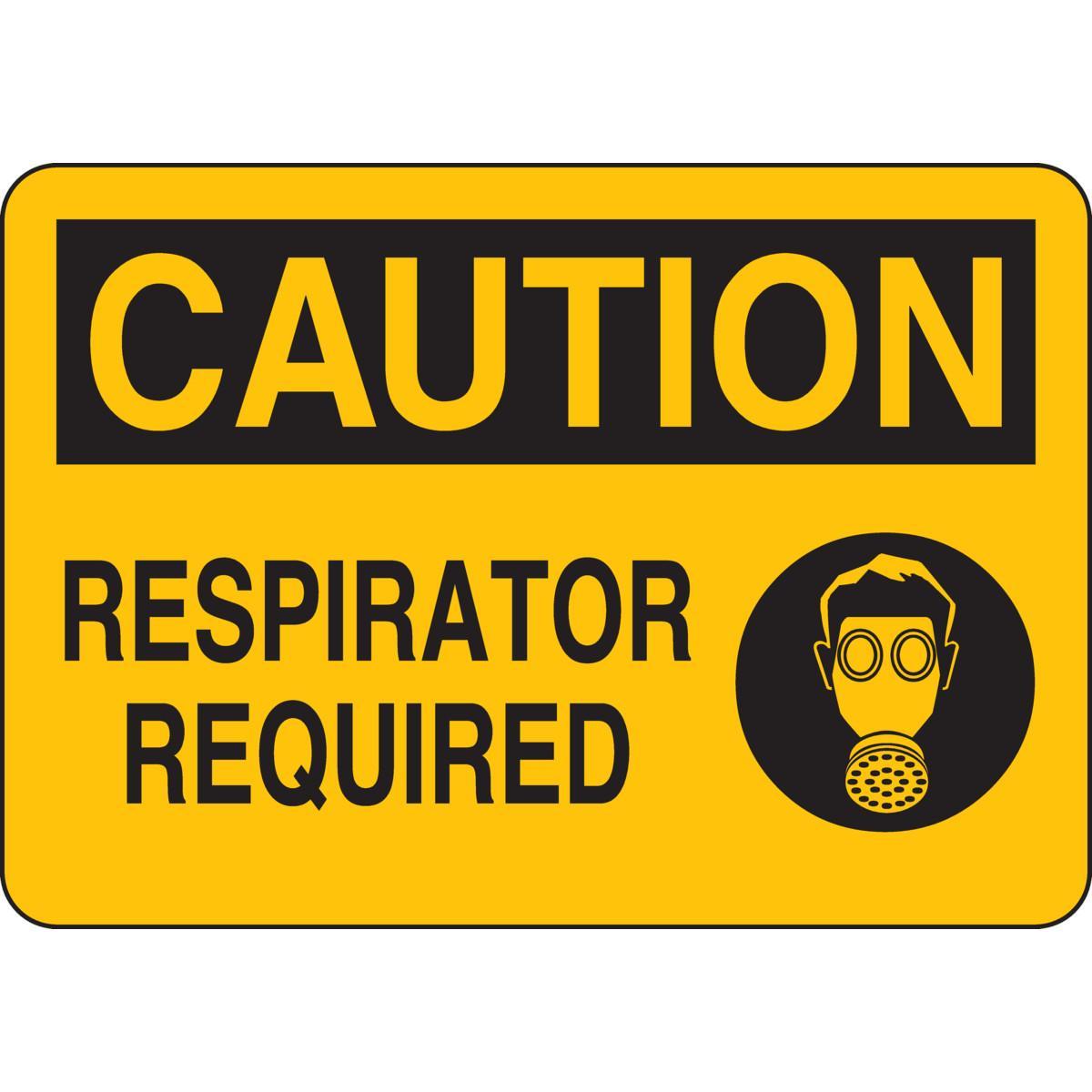 - Header:CAUTIONHeight:7 inLegend:RESPIRATOR REQUIREDLegend Style:Symbol/TextLegend/Background Color:Black on YellowMaterial:B-302 PolyesterMounting Type:AdhesiveType:Laminated RectangularWidth:10 in