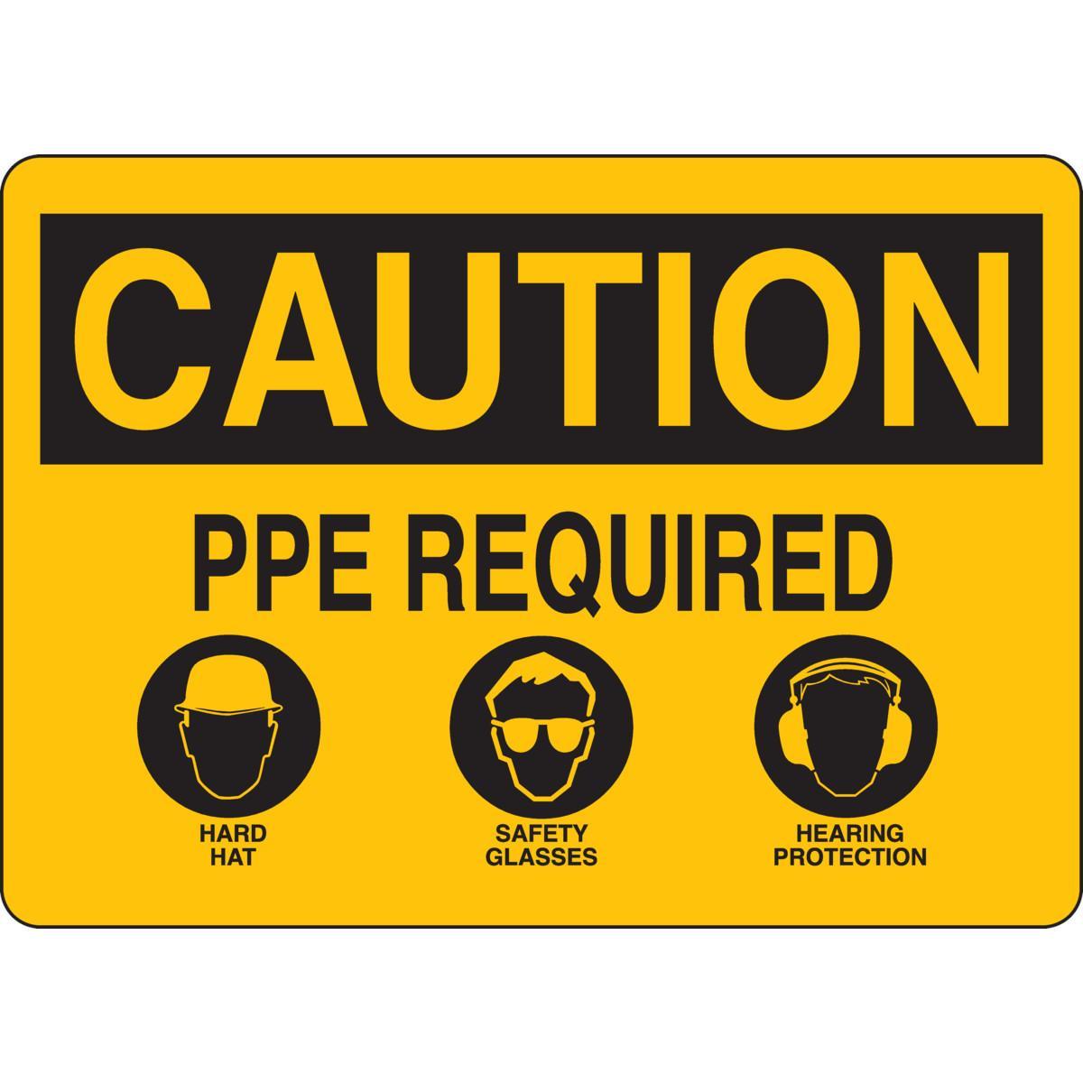 Brady 131968 Rectangular Personal Protection (PPE) Sign, CAUTION, 10 in H x 14 in W, Black on Yellow, B-401 Polystyrene, Fastened Mount