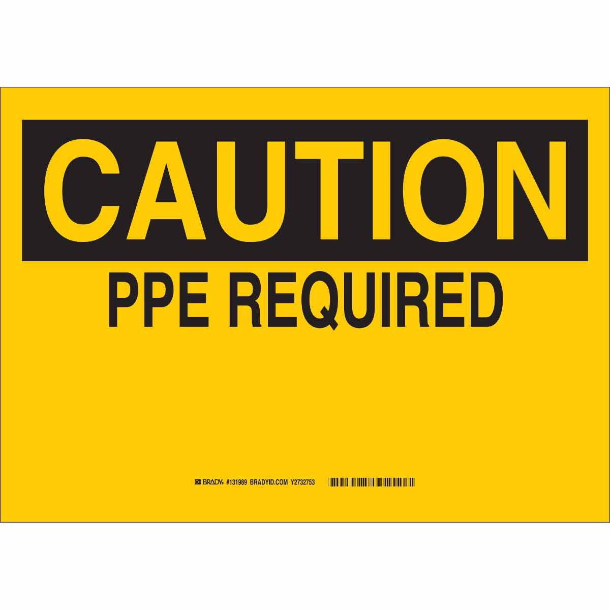 Brady 131989 Laminated Rectangular Personal Protection (PPE) Sign, CAUTION, 10 in H x 14 in W, Black on Yellow, B-302 Polyester, Adhesive Mount