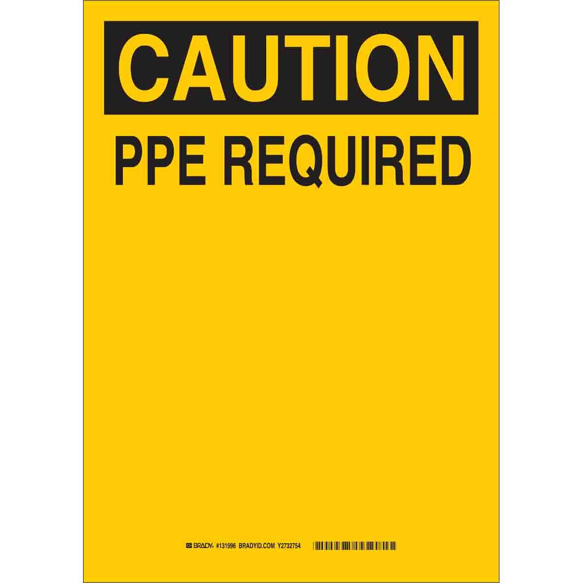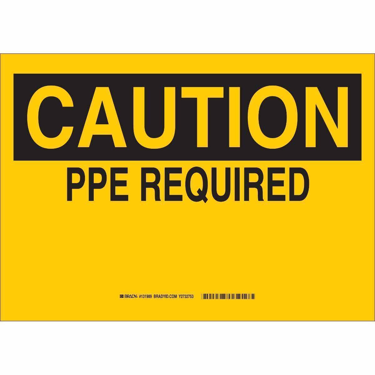 Brady 131998 Rectangular Personal Protection (PPE) Sign, CAUTION, 14 in H x 10 in W, Black on Yellow, B-120 Fiberglass, Fastened Mount