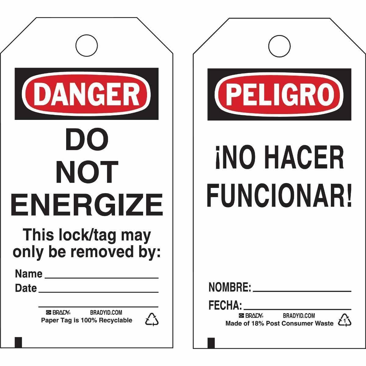 Brady 133565 Rectangular Lockout Tag, 5-3/4 in H x 3 in W, Black/Red on White, 3/8 in Hole, B-851 Economy Polyester