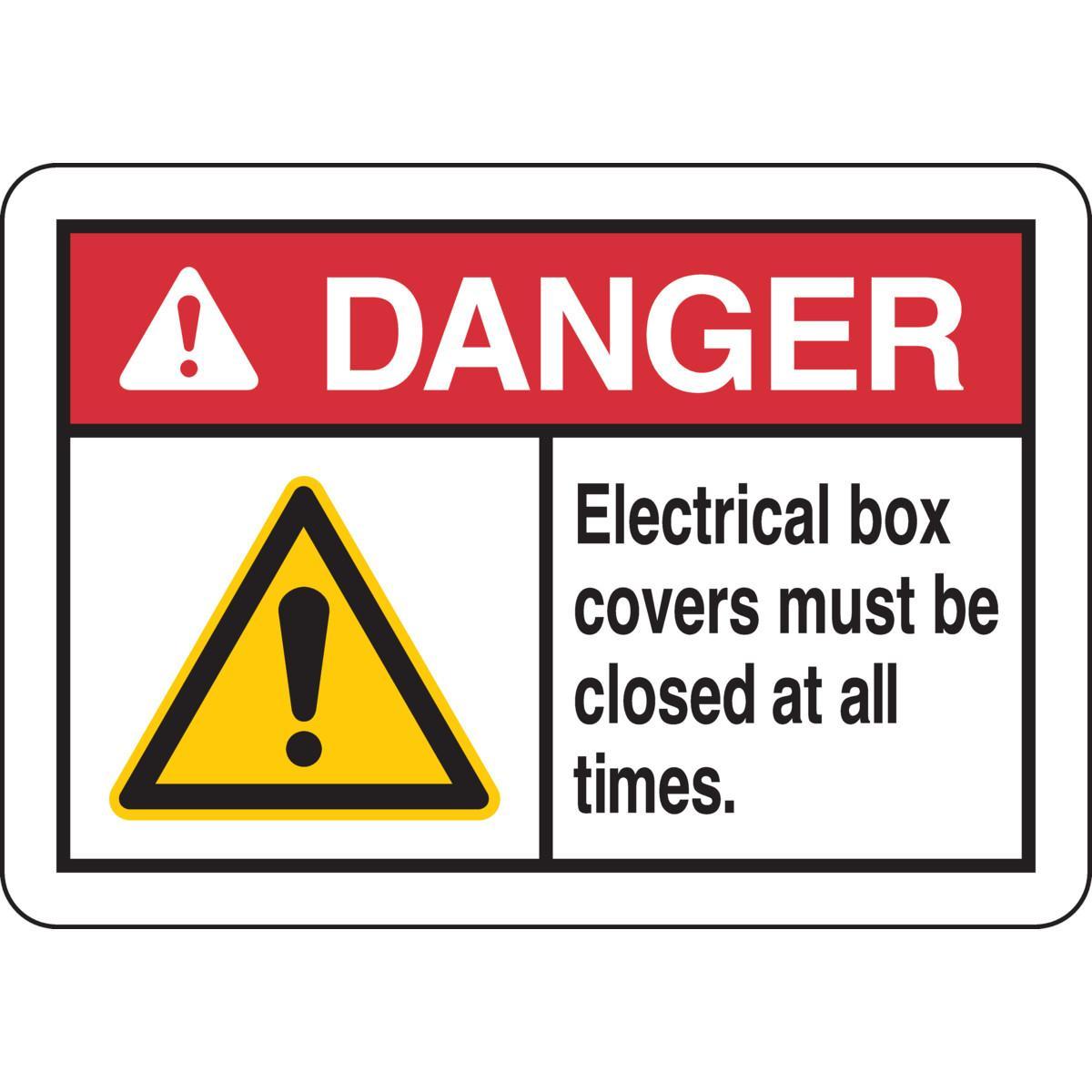 - Header:DANGERHeight:10 inLegend:ELECTRICAL BOX COVERS MUST BE CLOSED AT ALL TIMESLegend Style:Symbol/TextLegend/Background Color:Black/Red/Yellow on WhiteMaterial:B-401 PolystyreneMounting Type:FastenedType:RectangularWidth:14 in