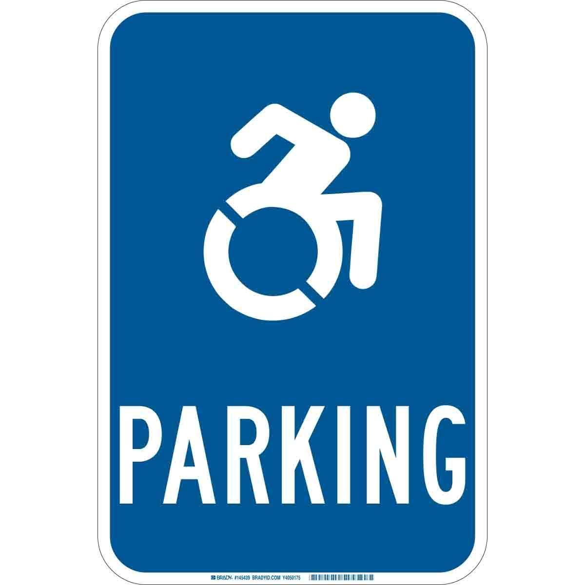 Brady 145438 Rectangular Handicapped Parking Sign, B-120 Fiberglass, Fastened Mount, 18 in H x 12 in W, White on Blue