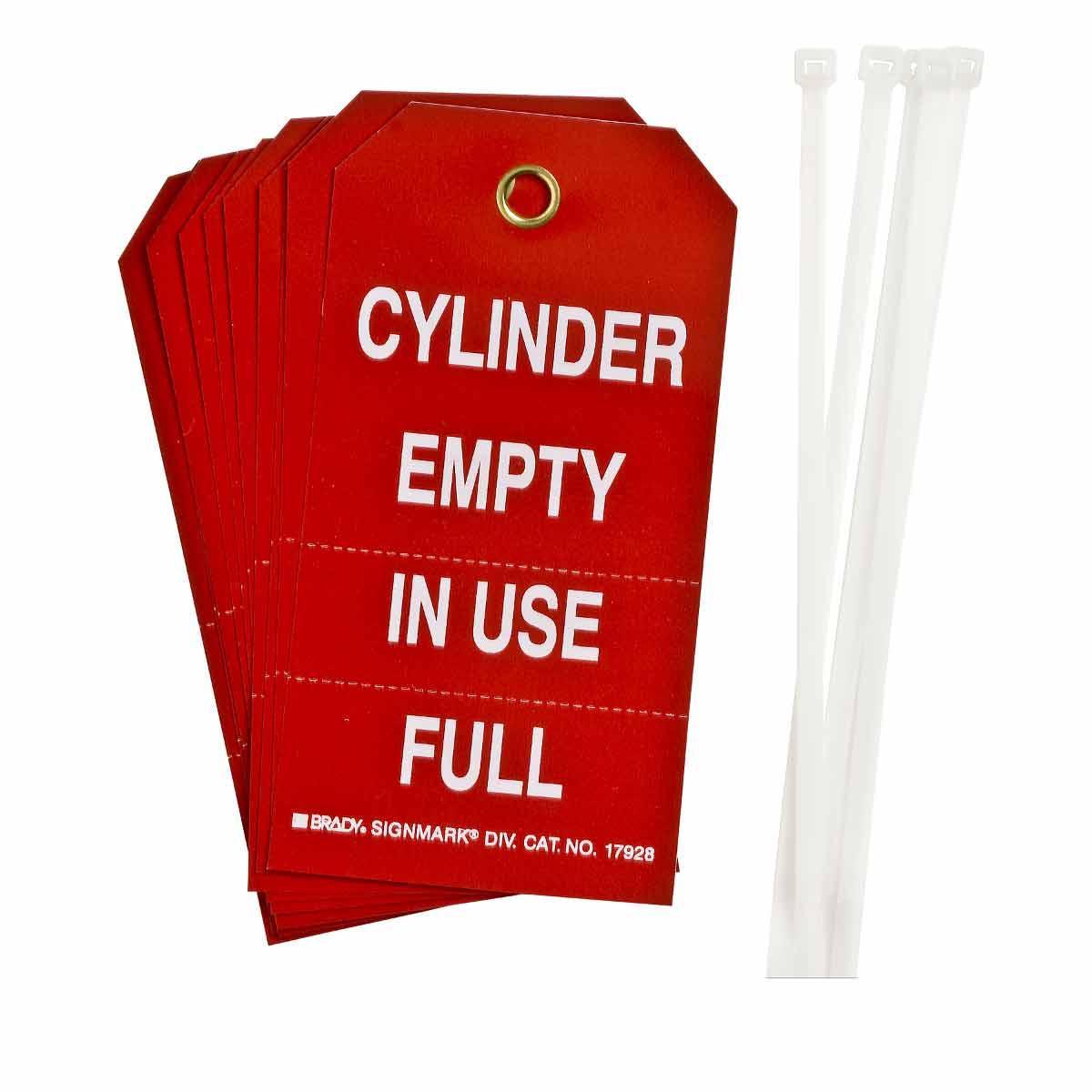 - Country of Origin:USGrommet Type:MetalHeight:5-3/4 inHole Size:3/8 inLegend:CYLINDER EMPTY IN USE FULLLegend/Background Color:White on RedManufacturer Name:Brady WorldwideMaterial:B-851 PolyesterType:RectangularWidth:3 inWithstand Pull Force:50 lb