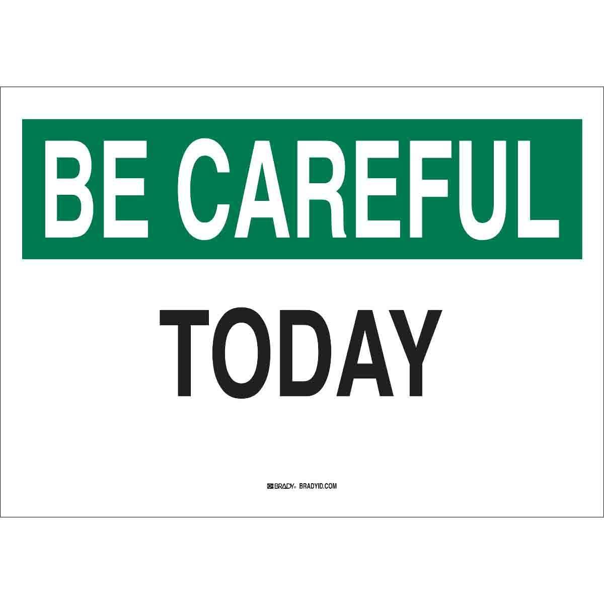 Brady 25304 Rectangular Safety Awareness and Compliance Banner, BE CAREFUL, 10 in H x 14 in W, Black/Green on White, B-401 Polystyrene, Fastened Mount