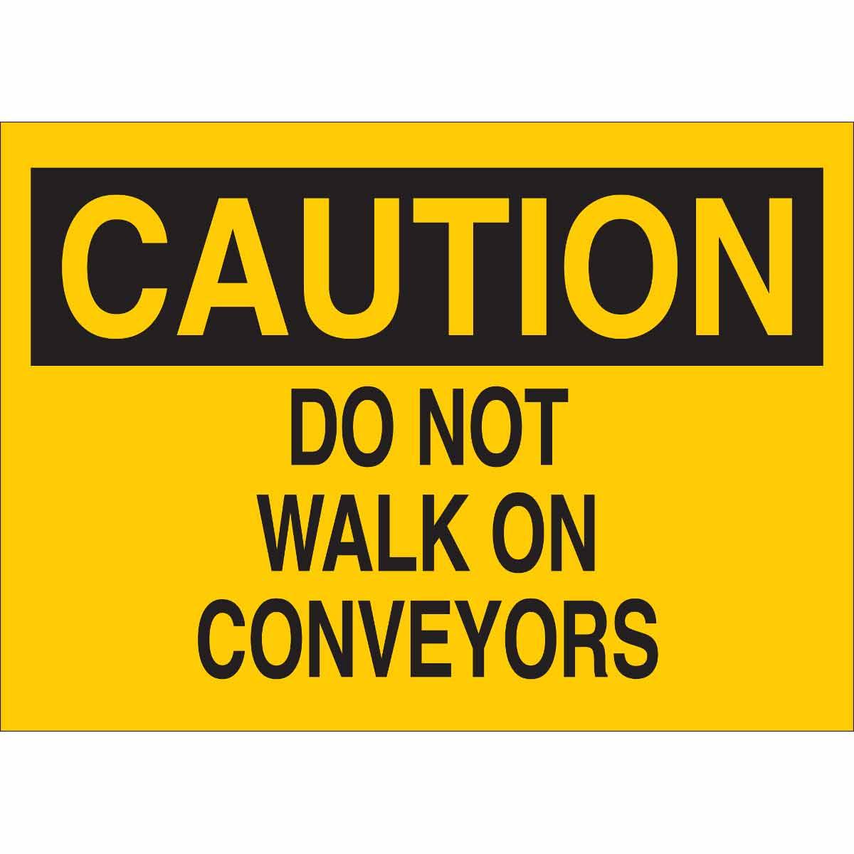 - Header:CAUTIONHeight:10 inLegend:DO NOT WALK ON CONVEYORSLegend Style:TextLegend/Background Color:Black on YellowMaterial:B-401 Plastic, B-401 PolystyreneMounting Type:Corner Hole, SurfaceType:Rectangle, RectangularWidth:14 in