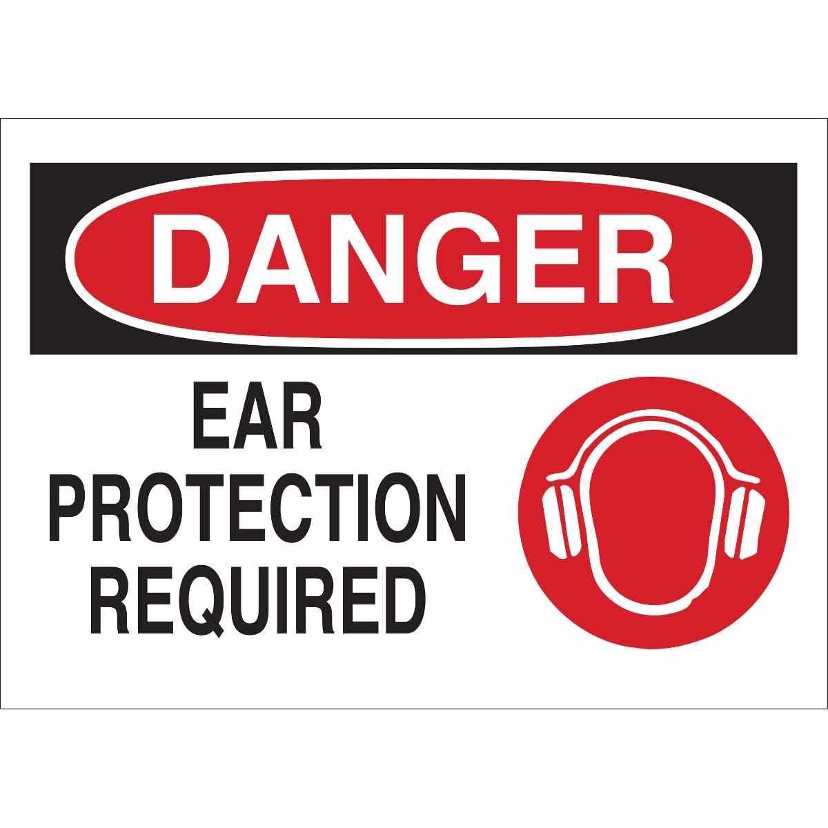 - Header:DANGERHeight:10 inLegend:DANGER EAR PROTECTION REQUIRED, EAR PROTECTION REQUIREDLegend Style:Symbol/TextLegend/Background Color:Black/Red on WhiteMaterial:B-401 PolystyreneMounting Type:Corner Hole, Corner HolesType:RectangularWidth:14 in