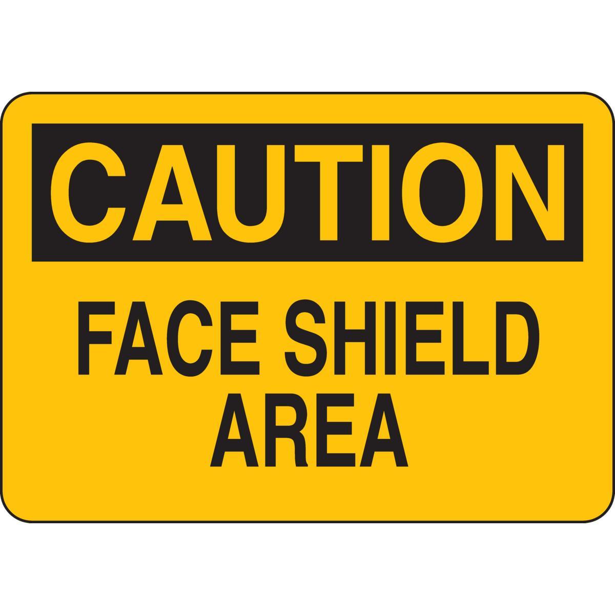 - Header:CAUTIONHeight:7 inLegend:FACE SHIELD AREALegend Style:TextLegend/Background Color:Black on YellowMaterial:B-555 AluminumMounting Type:Corner Hole, Fastened, SurfaceType:Rectangle, RectangularWidth:10 in
