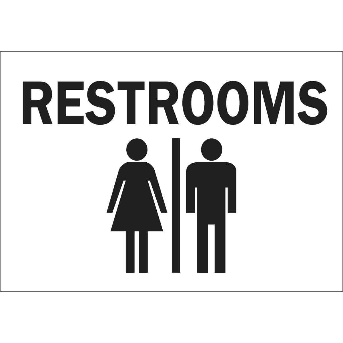 - Height:10 inLanguage:EnglishLegend:RESTROOMSLegend Style:Symbol/TextLegend/Background Color:Black on WhiteMaterial:B-555 AluminumMounting Type:Corner Hole, Corner Holes, FastenedType:RectangularWidth:14 in