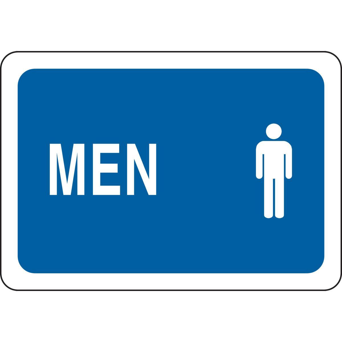 - Height:10 inLanguage:EnglishLegend:MENLegend Style:Symbol/TextLegend/Background Color:Blue on whiteMaterial:B-401 PolystyreneMounting Type:Corner Hole, Corner HolesType:RectangularWidth:7 in