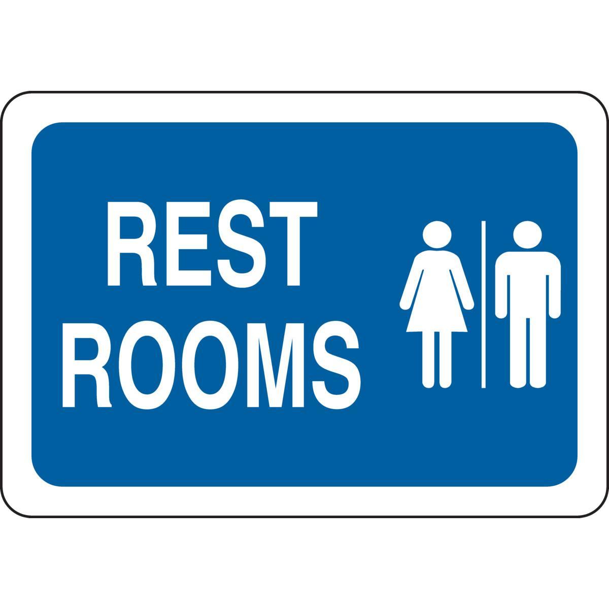 - Height:10 inLanguage:EnglishLegend:RESTROOMSLegend Style:Symbol/TextLegend/Background Color:Blue on whiteMaterial:B-555 AluminumMounting Type:Corner Hole, Corner Holes, FastenedType:RectangularWidth:7 in