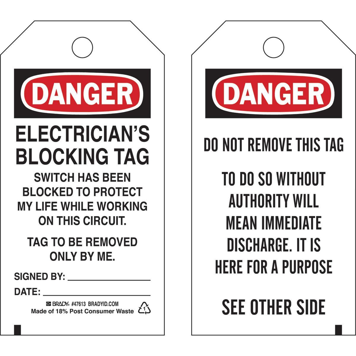 Brady 48743 2-Sided Rectangular Safety Tag, 5-3/4 in H x 3 in W, Black/Red on White, B-853 Cardstock