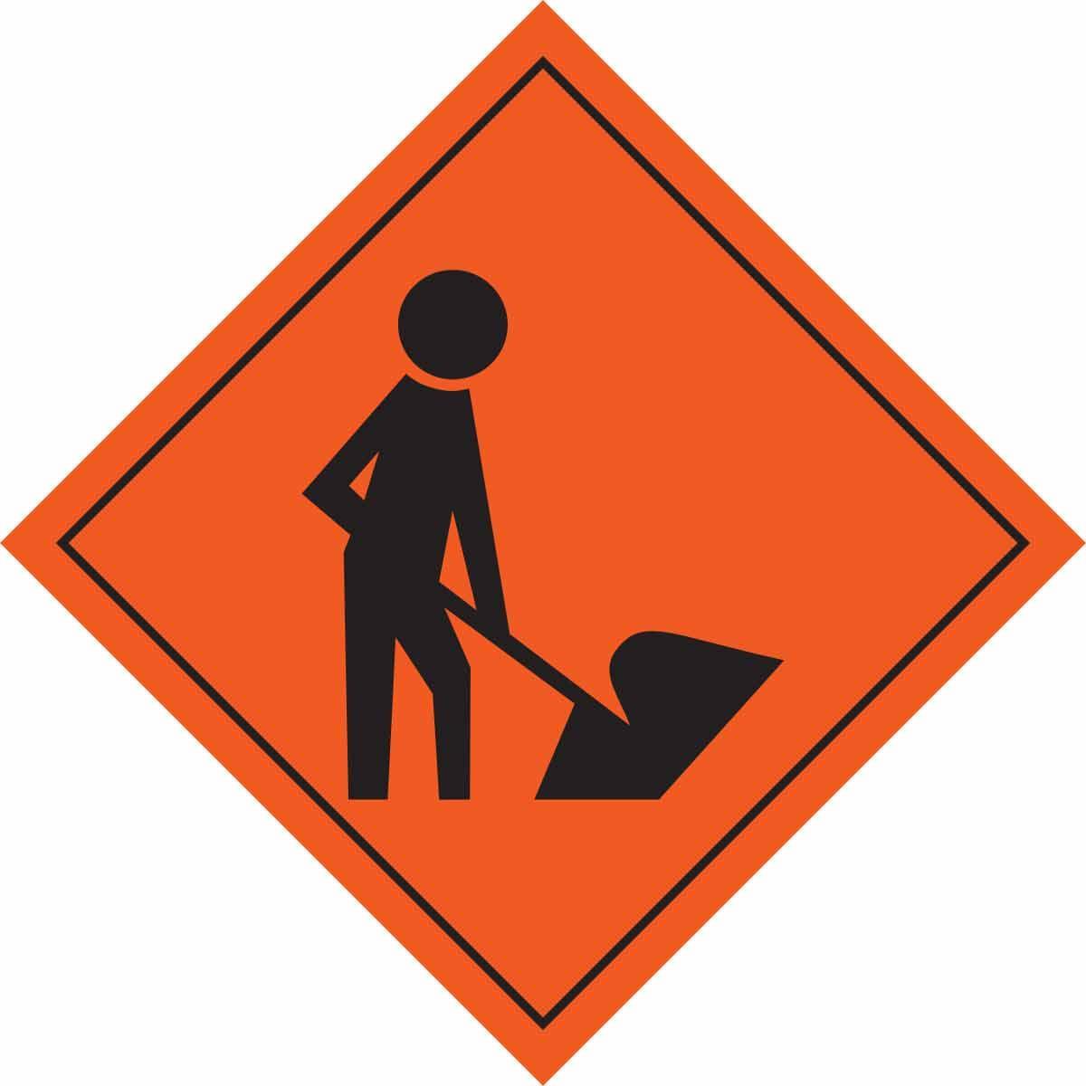 - Height:48 inLegend:(picto of construction worker)Legend Style:TextLegend/Background Color:Black on OrangeMaterial:Reflective Vinyl, VinylType:DiamondWidth:48 in