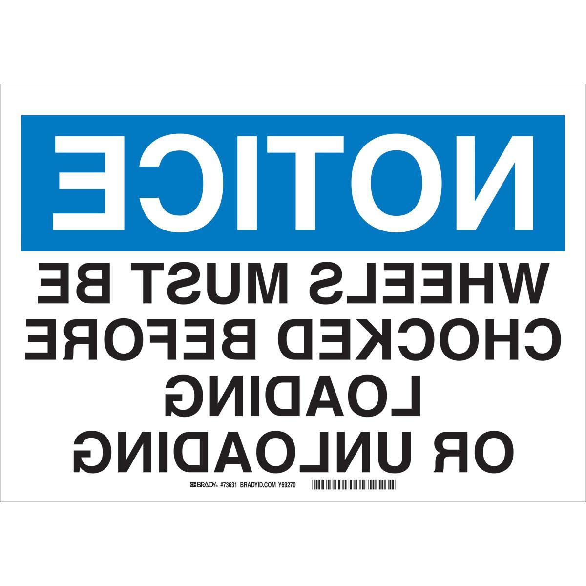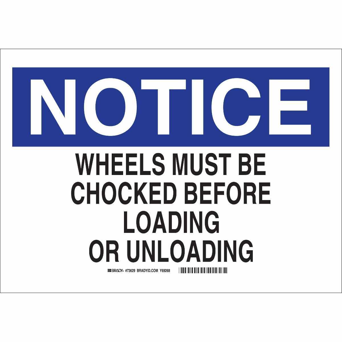 - Height:14 inLegend:WHEELS MUST BE CHOCKED BEFORE LOADING AND UNLOADINGLegend Style:TextLegend/Background Color:Black/Blue on WhiteMaterial:B-120 FiberglassMounting Type:FastenedType:RectangularWidth:20 in