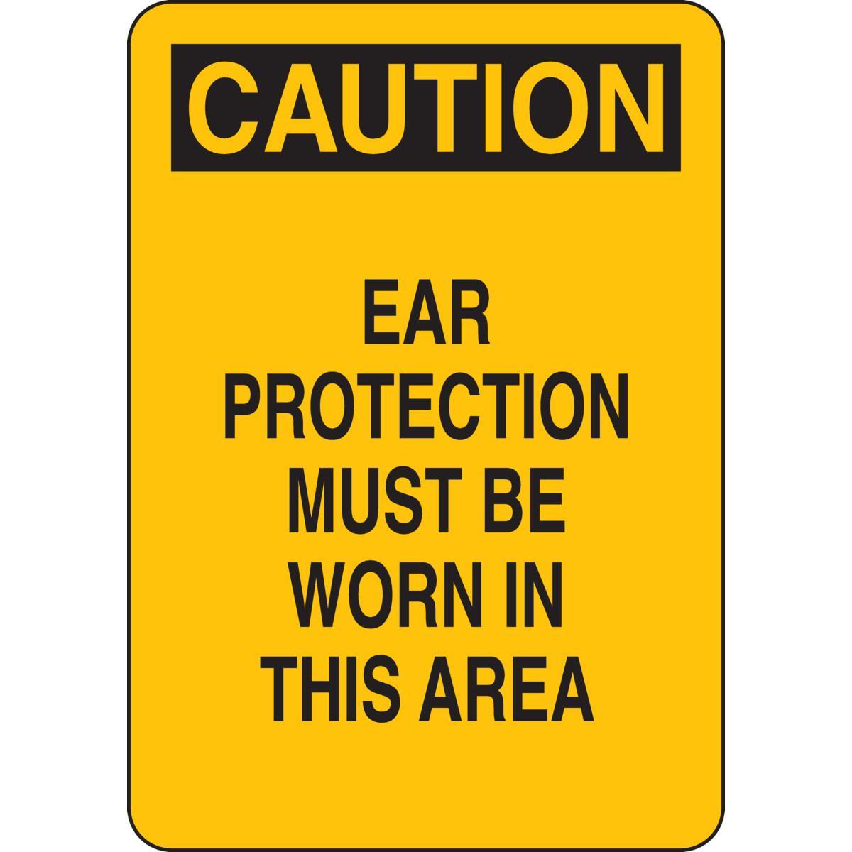 - Header:CAUTIONHeight:10 inLegend:EAR PROTECTION MUST BE WORN IN THIS AREALegend Style:TextLegend/Background Color:Black on YellowMaterial:B-302 PolyesterMounting Type:Self-Adhesive, Self-Adhesive/SurfaceType:Laminated Rectangle, Laminated RectangularWidth:7 in