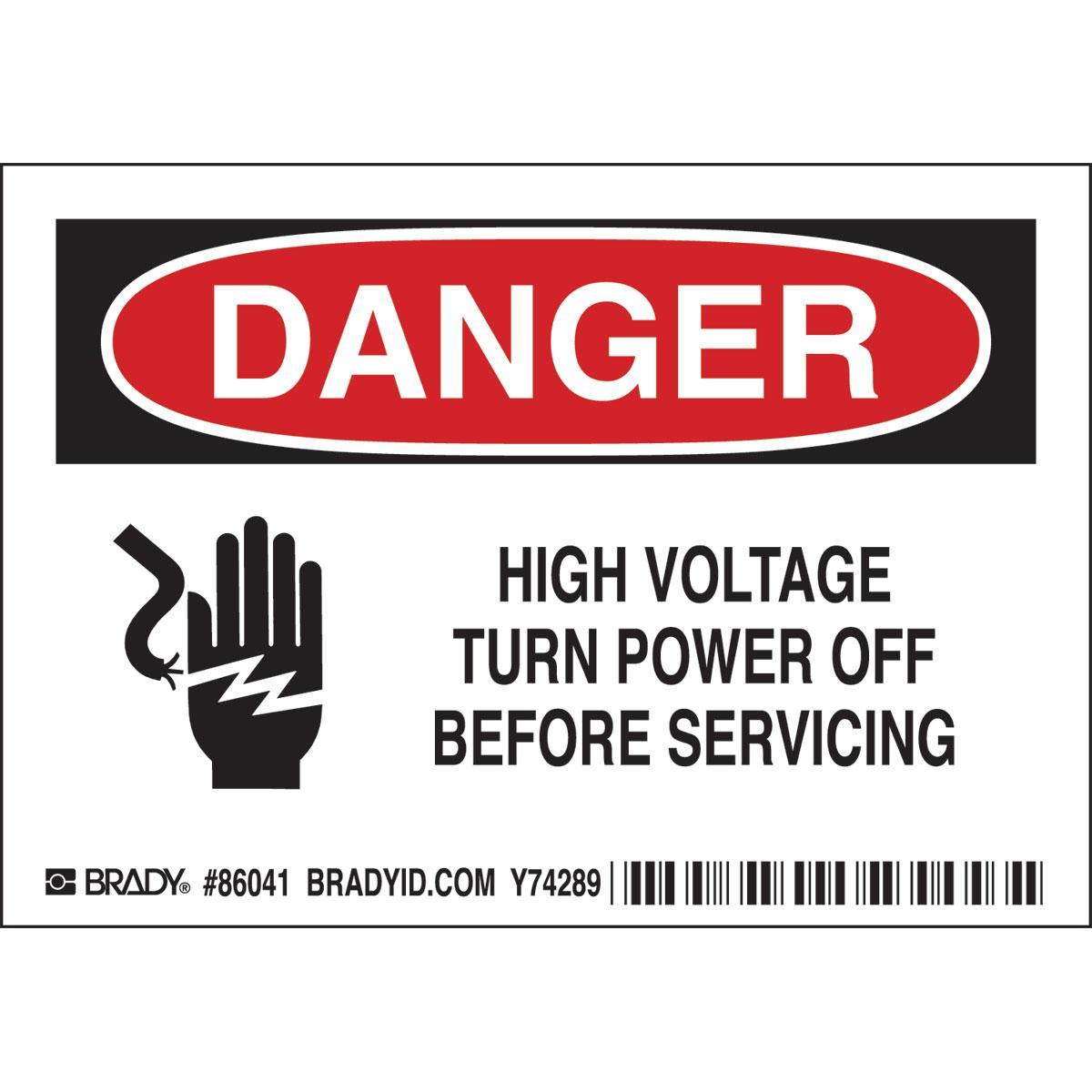 - Header:DANGERHeight:3-1/2 inLegend:HIGH VOLTAGE TURN POWER OFF BEFORE SERVICINGLegend Style:TextLegend/Background Color:Black/Red on WhiteMaterial:B-302 PolyesterMounting Type:AdhesiveType:OverlaminatedWidth:5 in