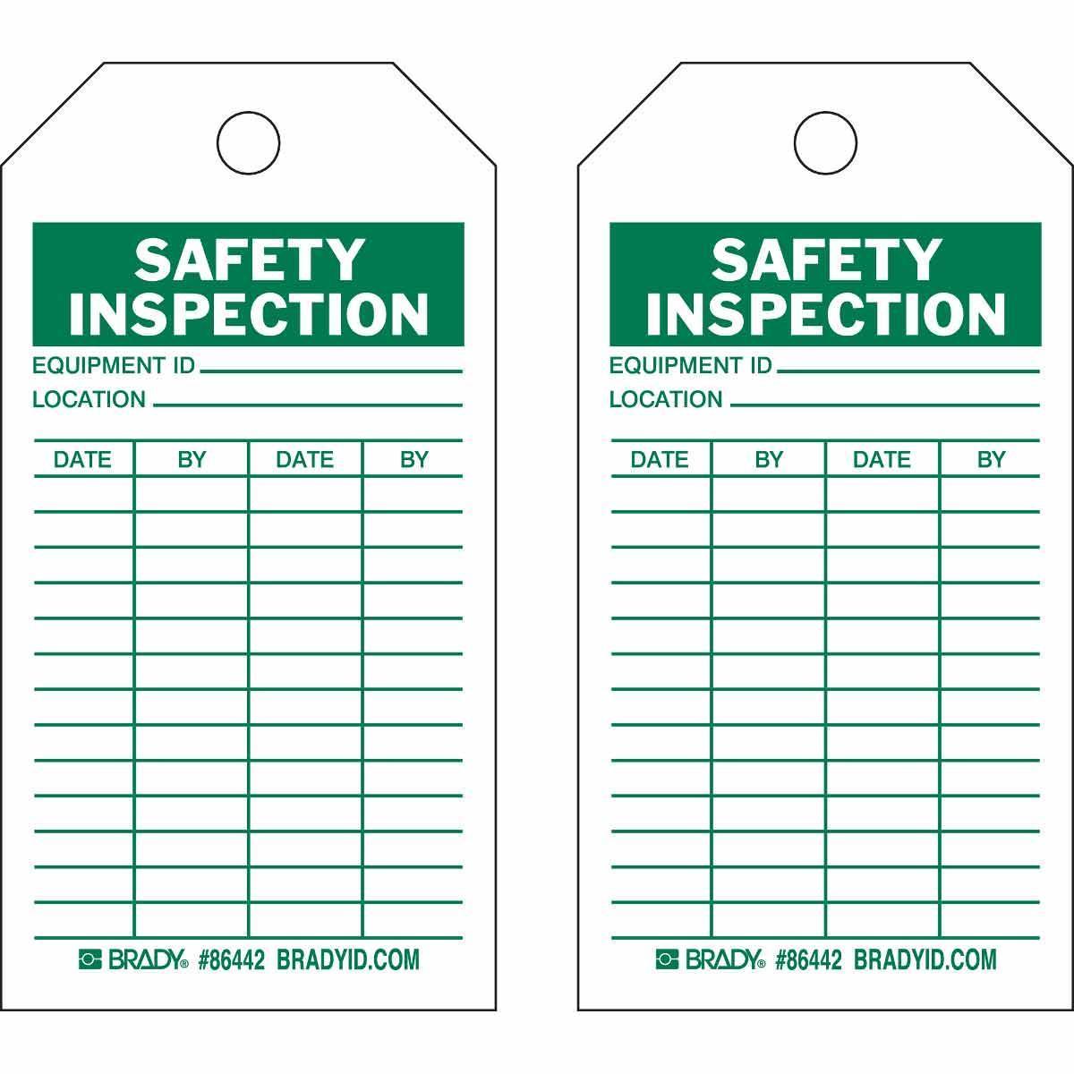 - Durable inspection and material control tags inform employees of the inspection history and status of equipment or materials