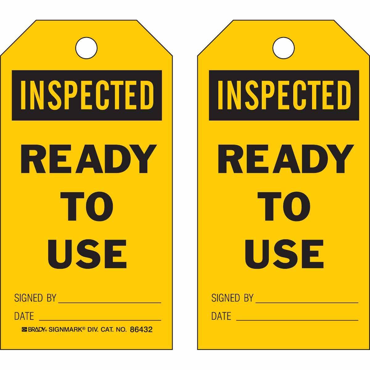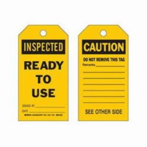 - Country of Origin:USHeight:7 inHole Size:3/8 inLegend:INSPECTED READY TO USE SIGNED BY: DATE:/DO NOT REMOVE THIS TAG REMARKS:Legend/Background Color:Black on YellowManufacturer Name:Brady WorldwideMaterial:B-853 CardstockType:RectangularWidth:4 in