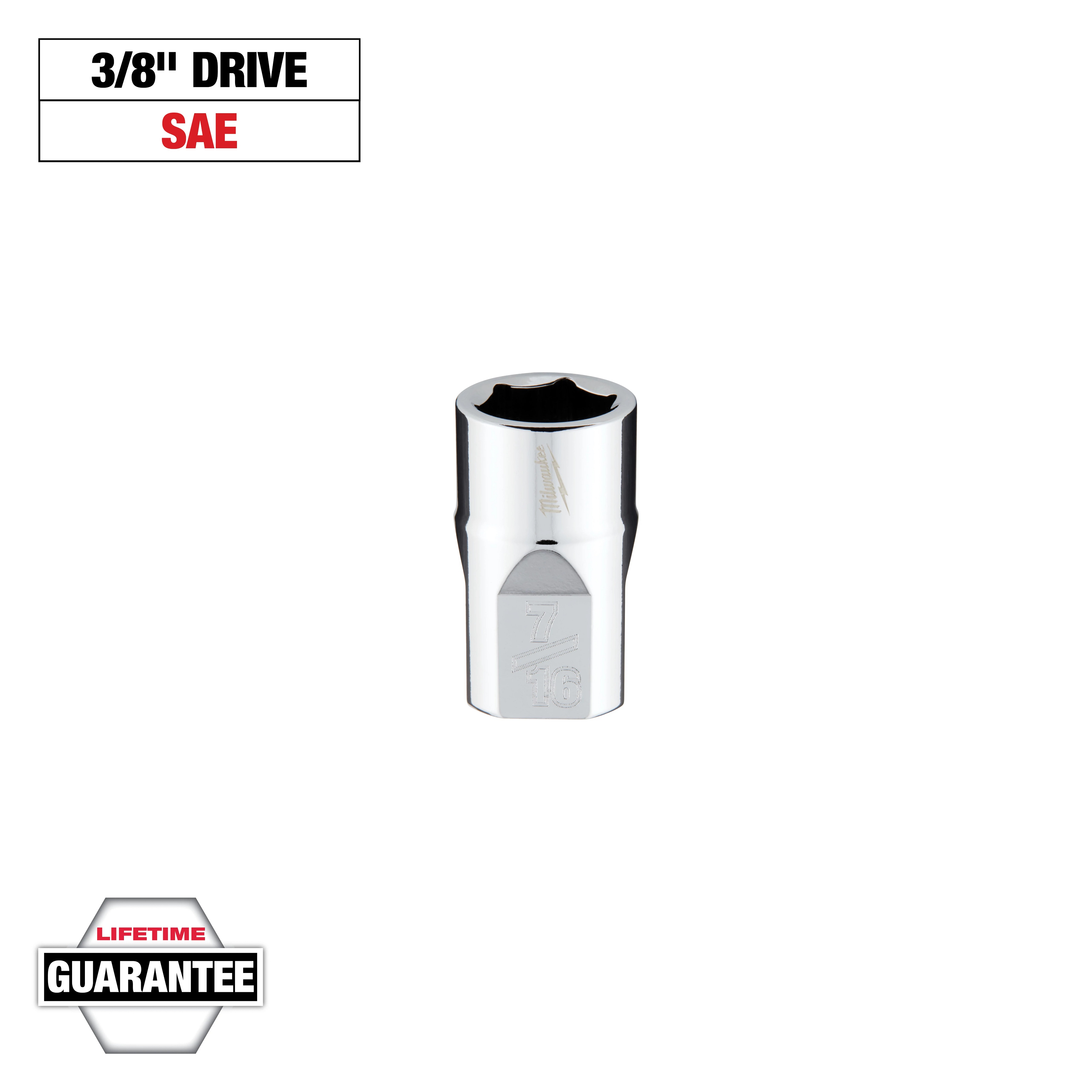 - Drive Size:3/8 inFinish:Polished ChromeMaterial:SteelMeasurement System:ImperialNumber of Points:6Overall Length:1.38 inSocket Size:7/16 inSocket Type:Standard