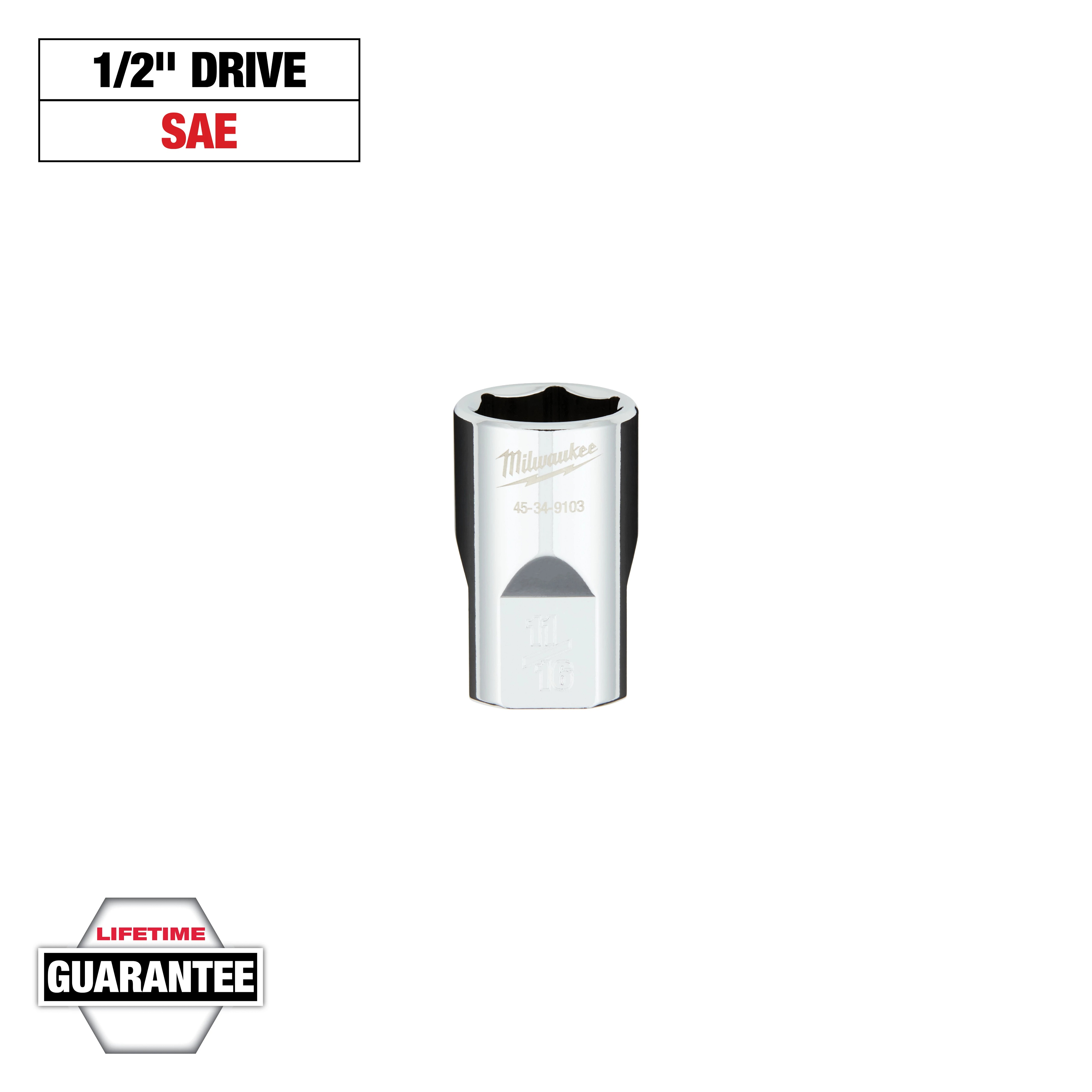 Milwaukee 45-34-9103 Standard Socket With FOUR FLAT Sides, 1/2 in, 11/16 in Deep Socket, 6 Points