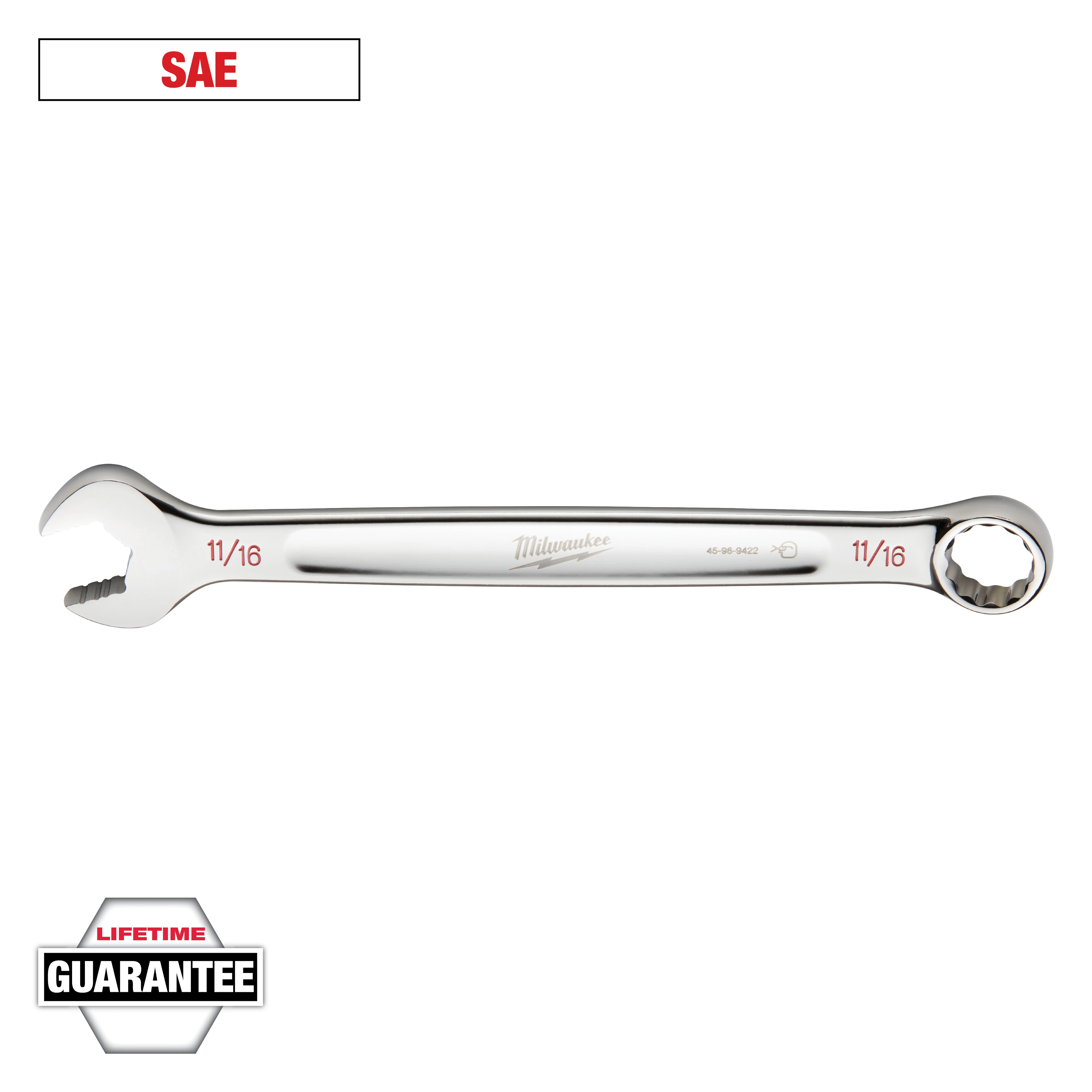 Milwaukee 45-96-9422 Standard Length Combination Wrench, 11/16 in Wrench, 12 Points, 15 deg Offset, 8.86 in OAL, Steel