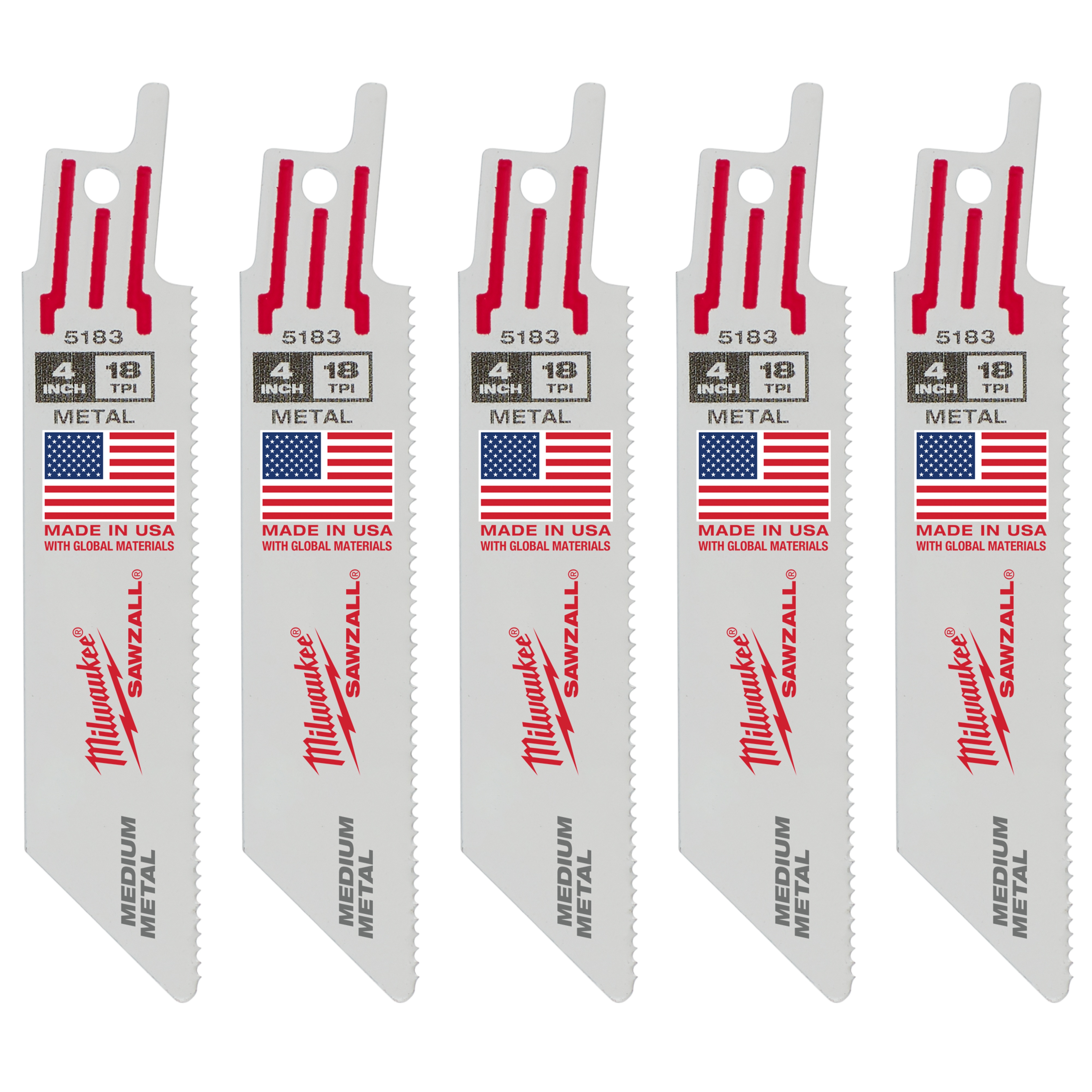 Milwaukee SAWZALL 48-00-5183 Double Duty Straight Back Thin Kerf Reciprocating Saw Blade, 4 in L x 3/4 in W, 18 TPI, Bi-Metal Body, Universal/Toothed Edge Tang