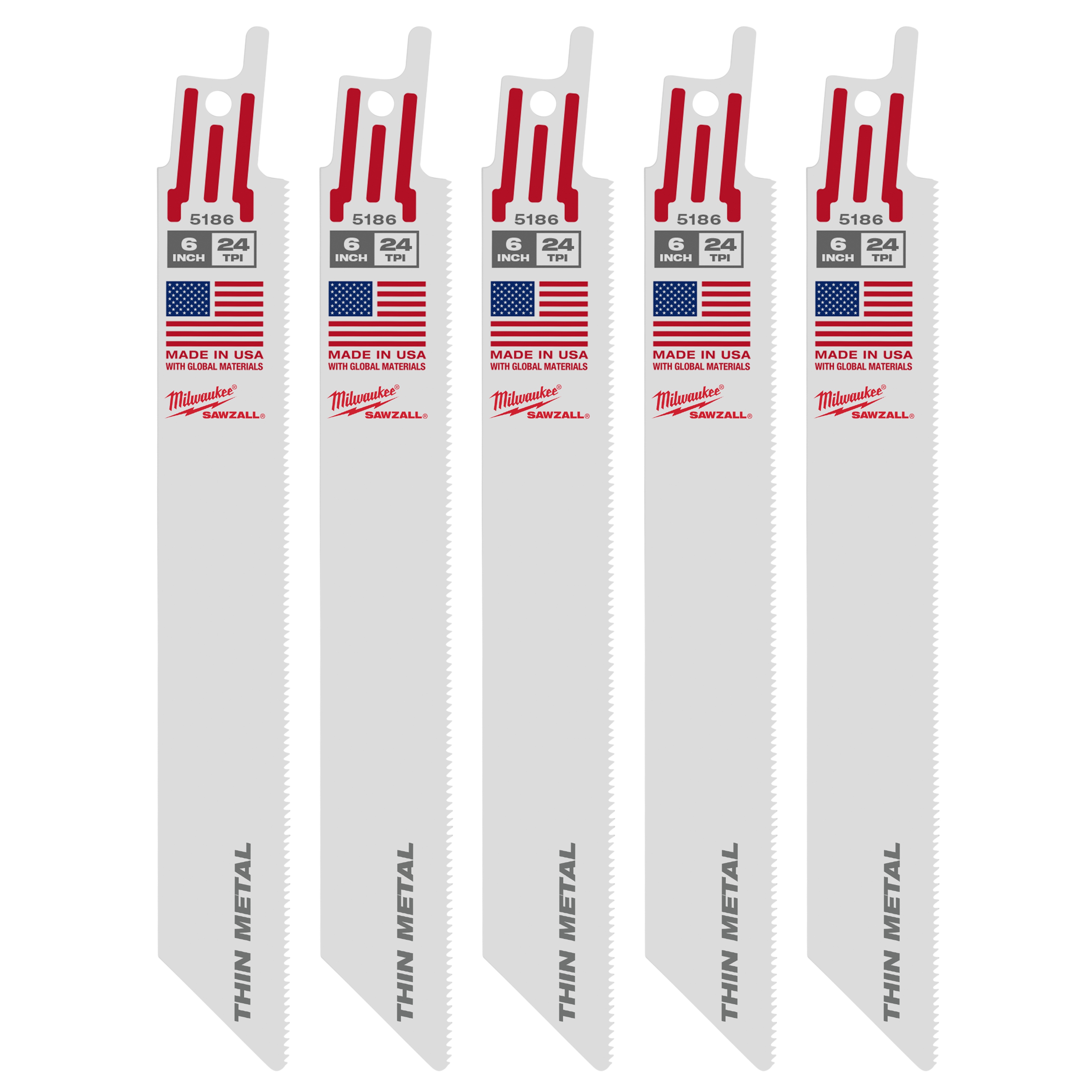 Milwaukee SAWZALL 48-00-5186 Double Duty Straight Back Thin Kerf Reciprocating Saw Blade, 6 in L x 3/4 in W, 24 TPI, Bi-Metal Body, Universal/Toothed Edge Tang