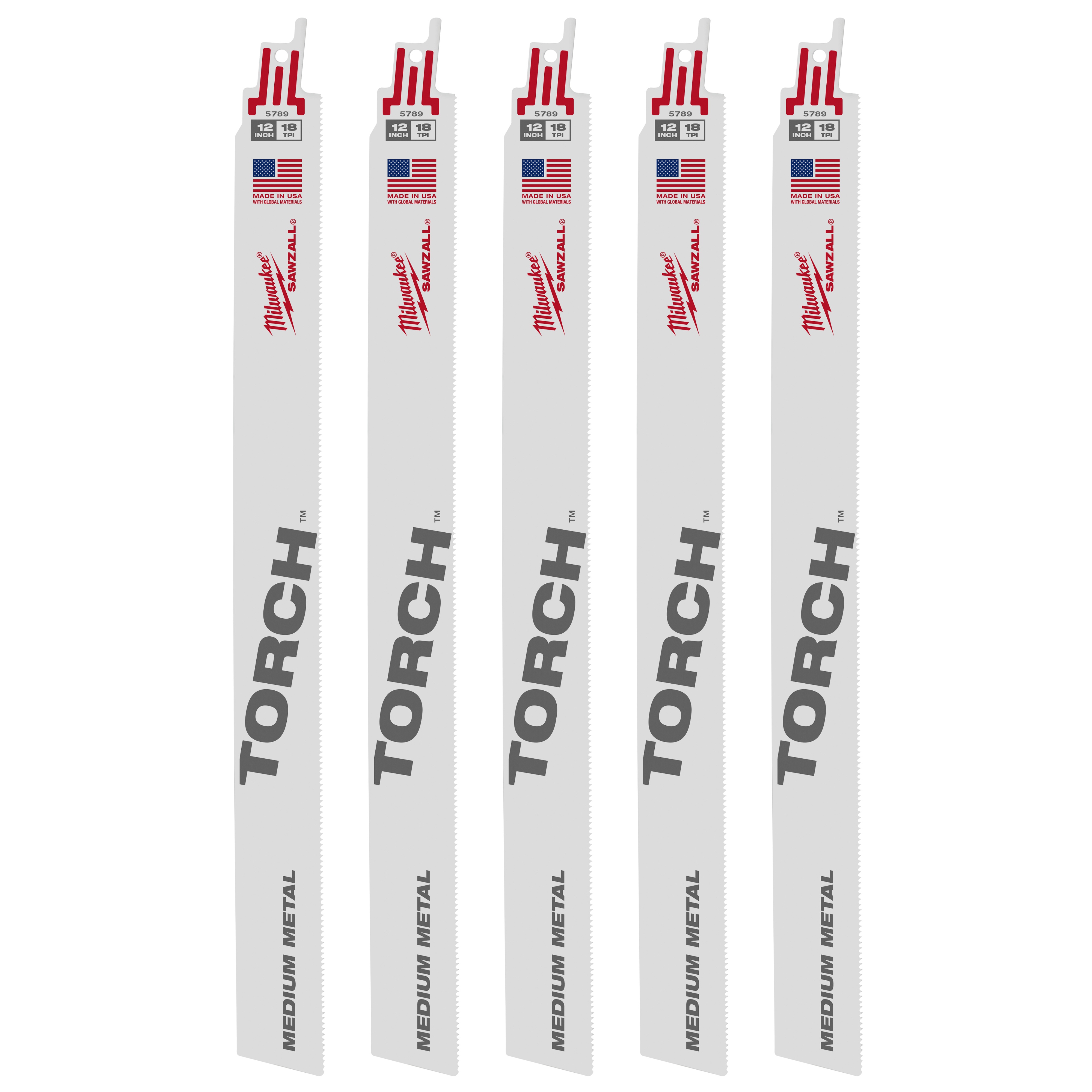 Milwaukee SAWZALL The Torch 48-00-5789 Demolition Straight Back Reciprocating Saw Blade, 12 in L x 1 in W, 18 TPI, Bi-Metal Body, Universal/Toothed Edge Tang