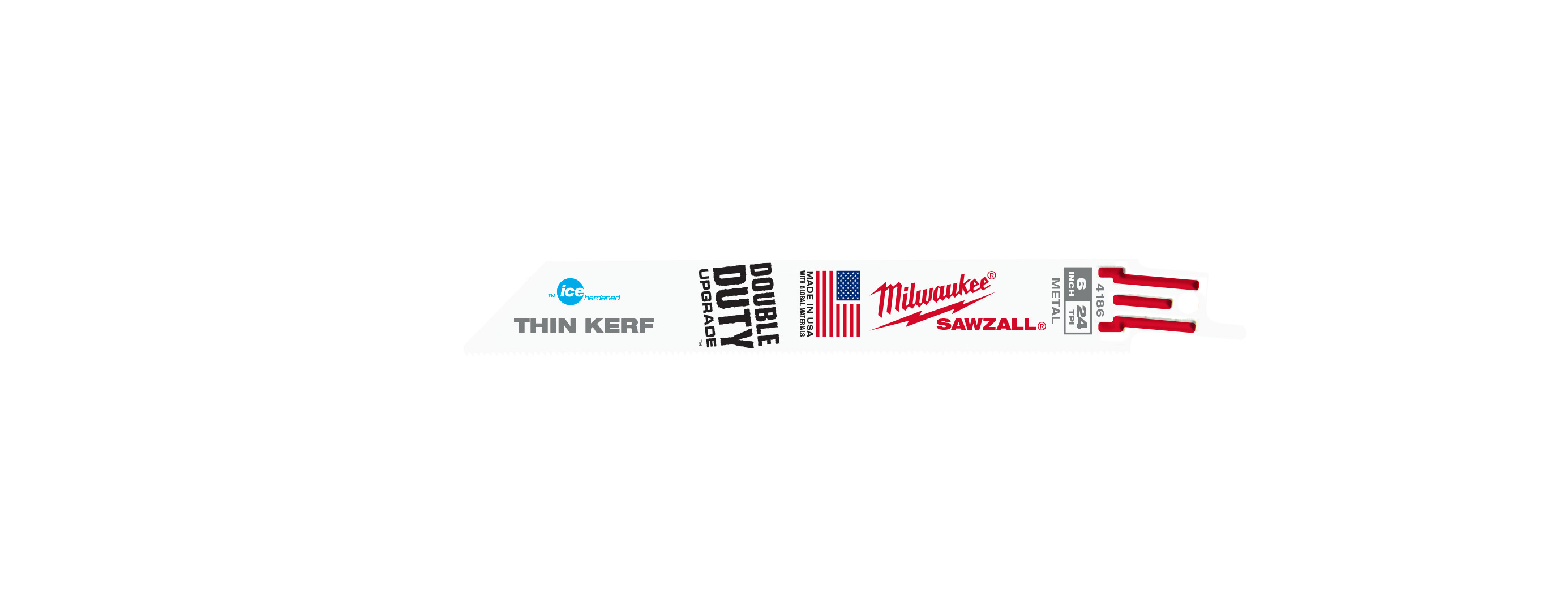 Milwaukee® Ice Hardened™ SAWZALL® 48-01-8186 Double Duty Straight Back Thin Kerf Reciprocating Saw Blade, 6 in L x 3/4 in W, 24 TPI, Bi-Metal Body, Universal/Toothed Edge Tang
