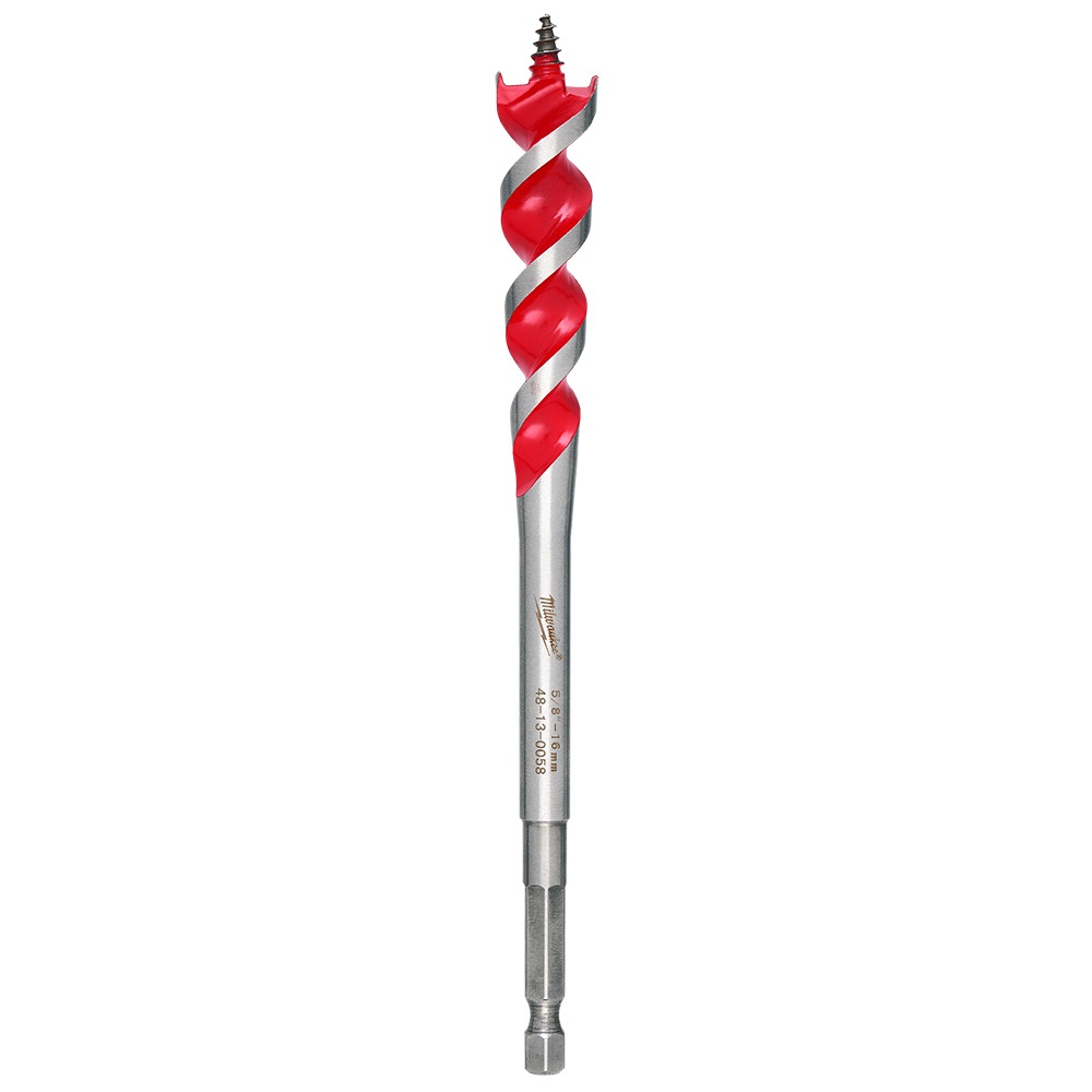 Milwaukee® Speed Feed™ Self-Feed Wood Bit, Self-Feed Drill Style, 5/8 in Diameter, 6-1/2 in Overall Length, Tapered Flute, 3 in Flute Length, 1/4 in Shank, Hex Shank, Right Hand Cutting Direction, HSS Cutting Edge, HSS, Uncoated, Red
