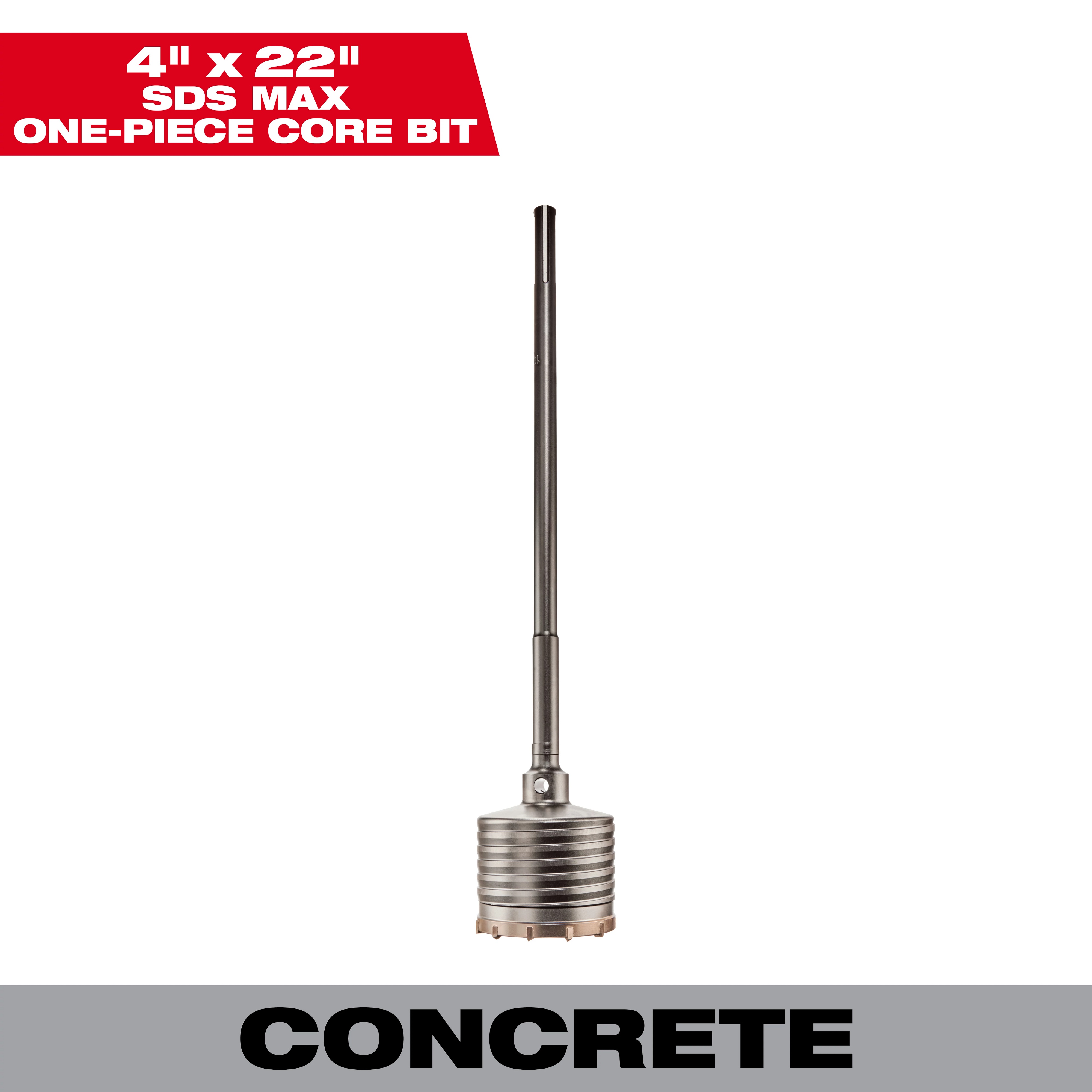 Milwaukee® Core Bit, 1-Piece, 22 in Overall Length, 3 in Cutting Depth, 45/64 in Shank, SDS Max® Shank, Carbide Cutting Edge, Silver