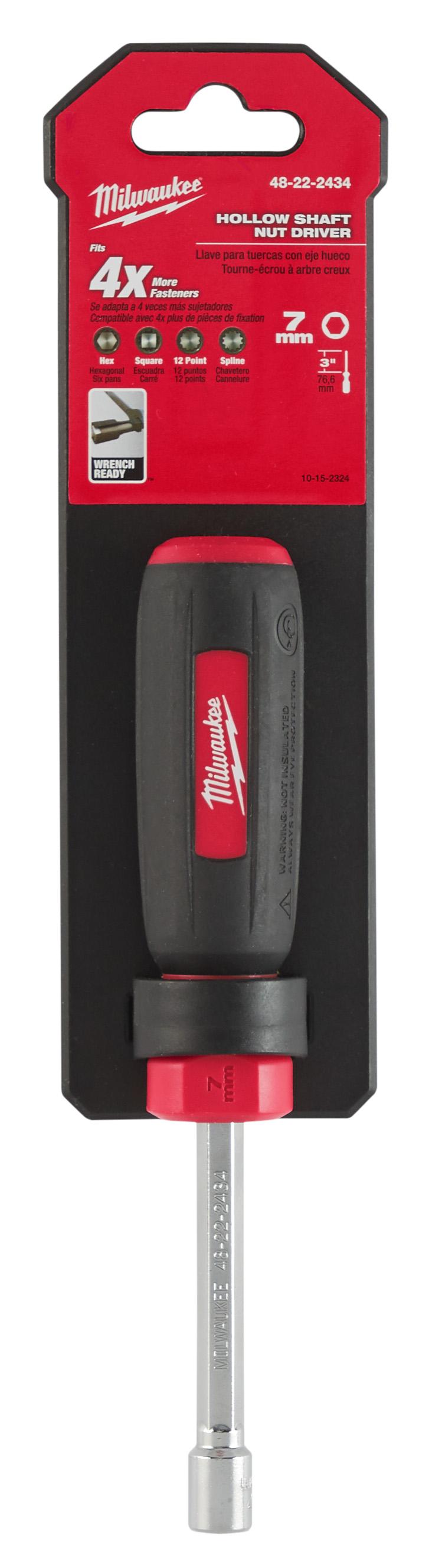 Milwaukee® 48-22-2434 Nut Driver, 7 mm, Hex/Hollow Shank, Black/Red Cushion Grip Handle, Polished Chrome