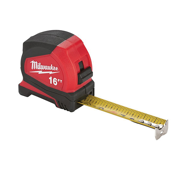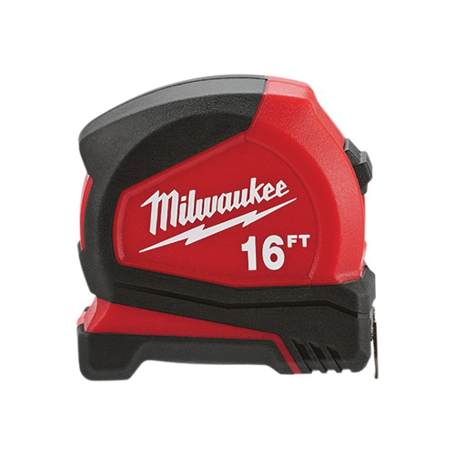 - Blade Length:16 ftBlade Material:SteelBlade Width:25 mmCase Color:Black/RedCase Material:ABSCase Type:ClosedGraduations:1/16 in, 1/8 in, 1/4 in, 1/2 inLocking Type:SlideMeasuring System:SAERewind Type:AutomaticStandout:9 ftType:Keychain