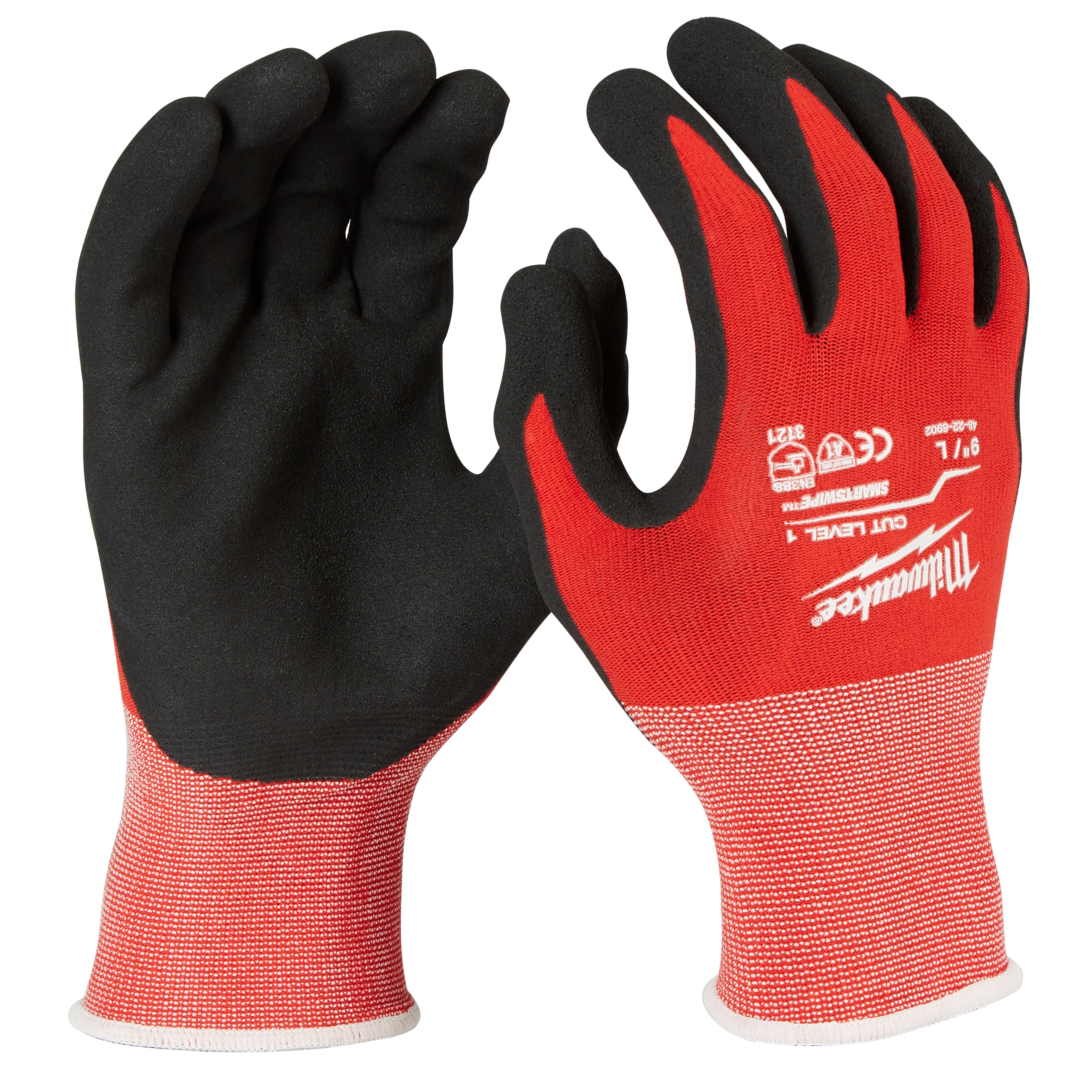 Milwaukee 48-22-8902B Dipped Gloves, L, Nylon, Knit Wrist Cuff, Resists: Abrasion, Tear and Puncture, ANSI Cut-Resistance Level: A1, ANSI Puncture-Resistance Level: 1