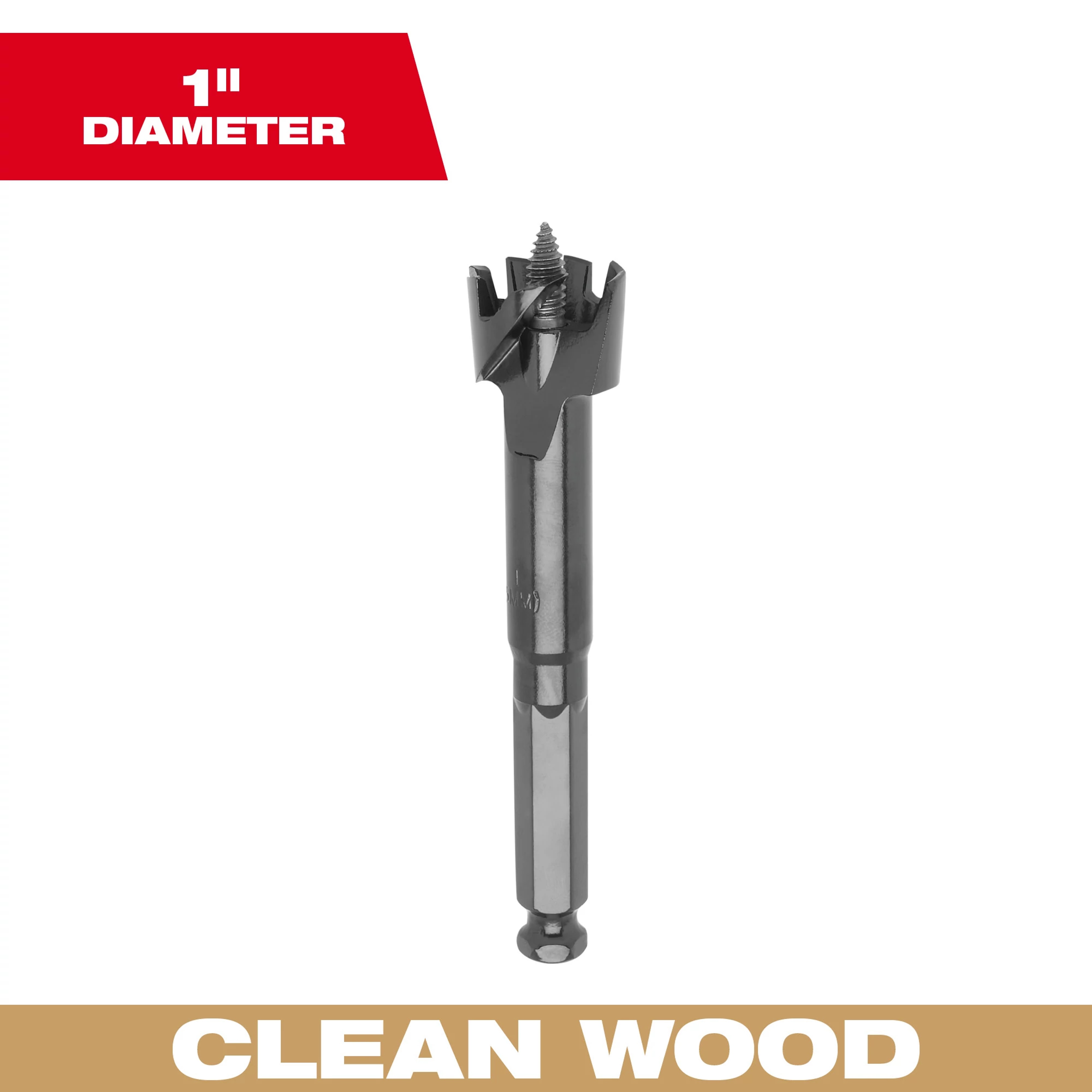 Milwaukee® Self-Feed Bit, Standard, Self-Feed Drill Style, 1 in Diameter, 6 in Overall Length, 7/16 in Shank, Hex Shank, Right Hand Cutting Direction, Alloy Steel Cutting Edge, Alloy Steel
