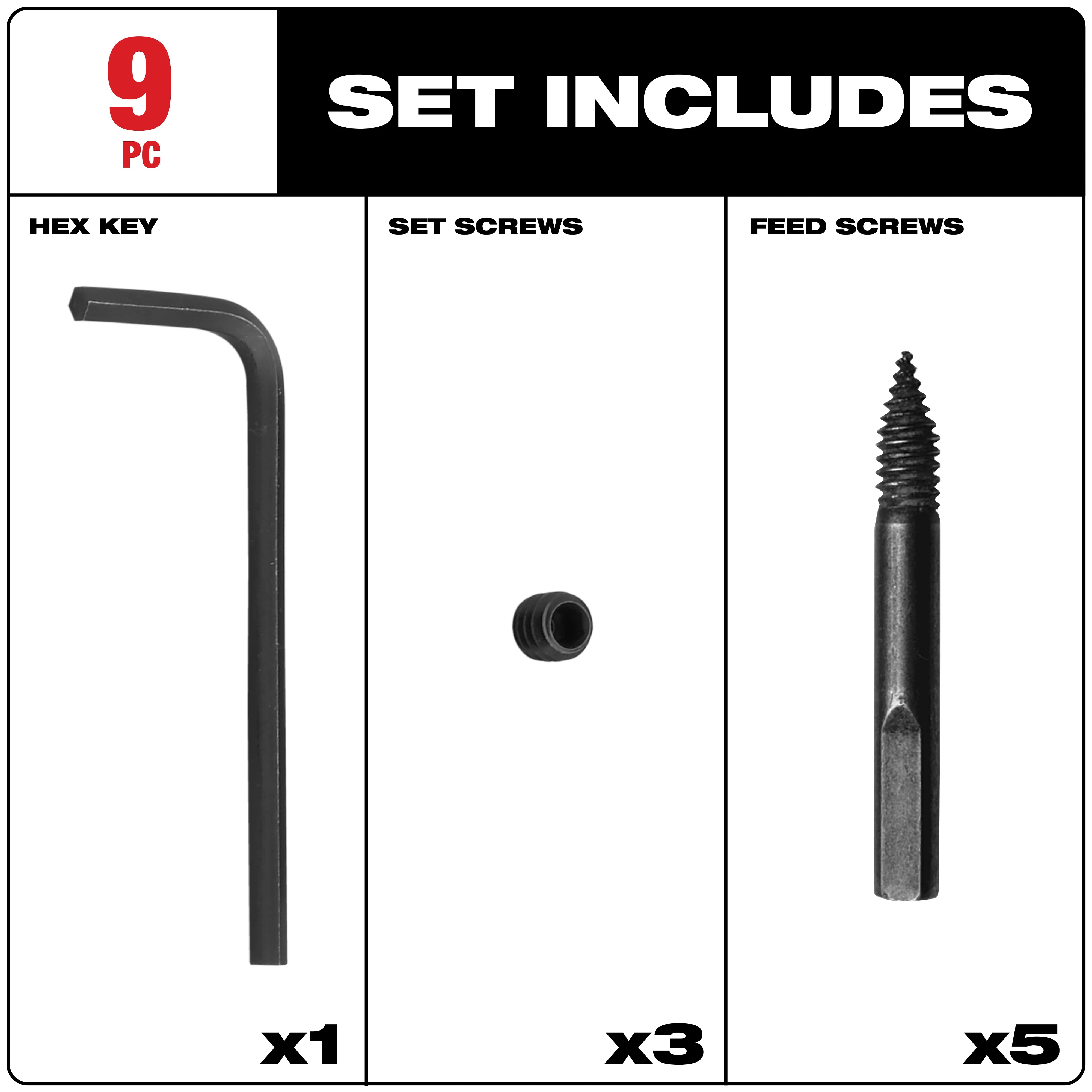 Milwaukee 48-25-6000 9-Piece Small Standard Feed and Set Screw Kit, For Use With 1 to 2-9/16 in Self-Feed Bit