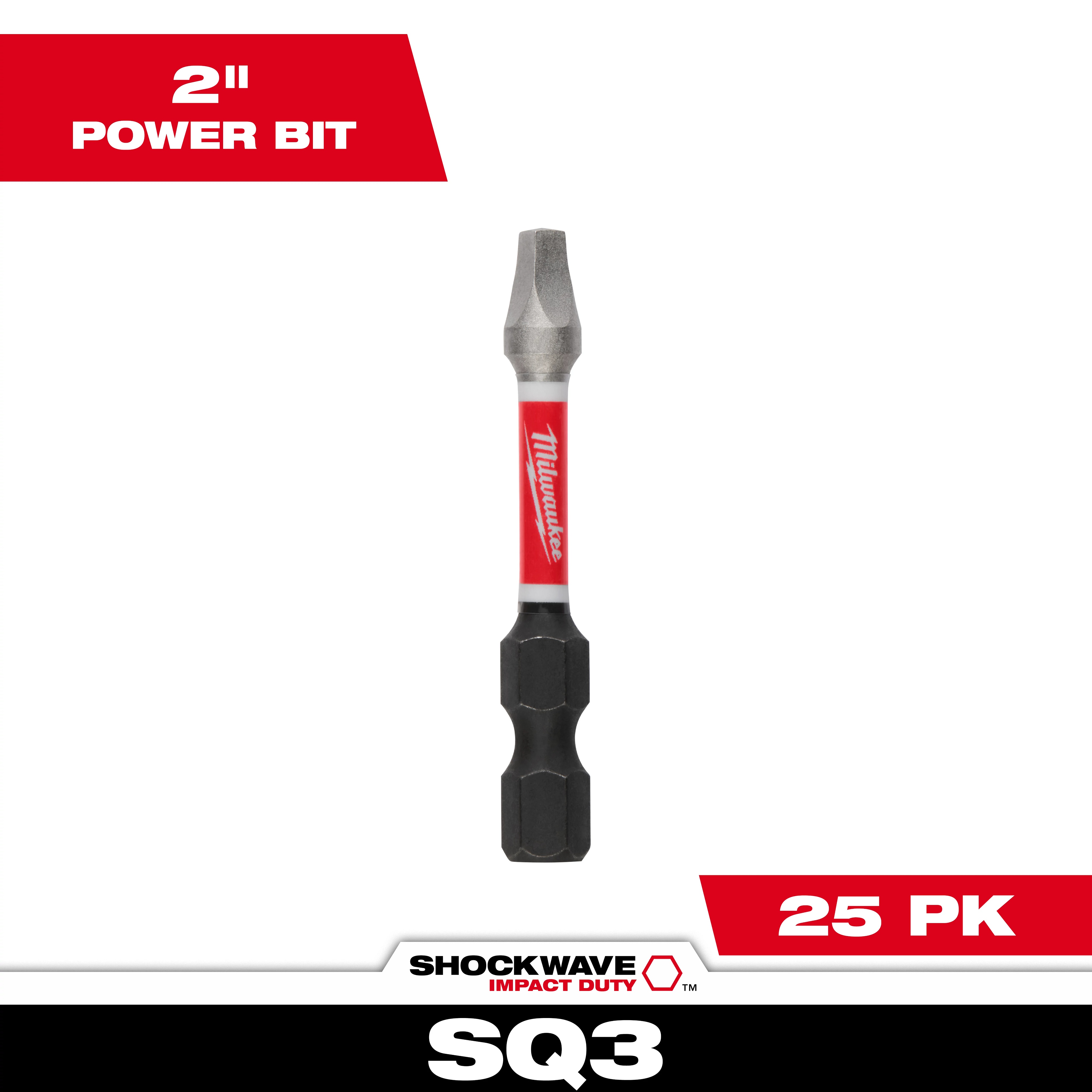 Milwaukee® SHOCKWAVE™ Impact Duty™ Impact Power Bit, #3 Point, Square Point, 2 in Overall Length, 1/4 in Drive/Shank, Custom Alloy76™ Steel