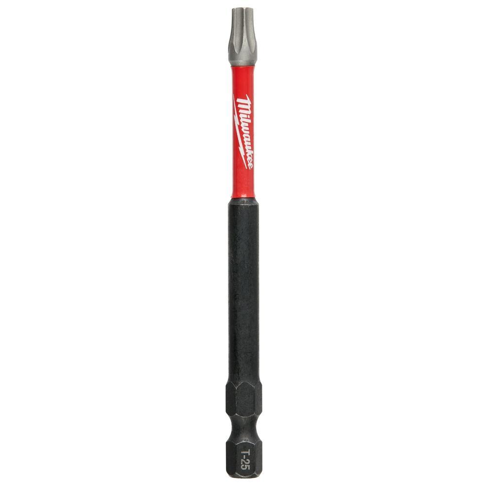 Milwaukee® SHOCKWAVE™ Impact Duty™ Impact Power Bit, T25 Point, Torx® Point, 3-1/2 in Overall Length, 1/4 in Drive/Shank, Hex Shank, Steel