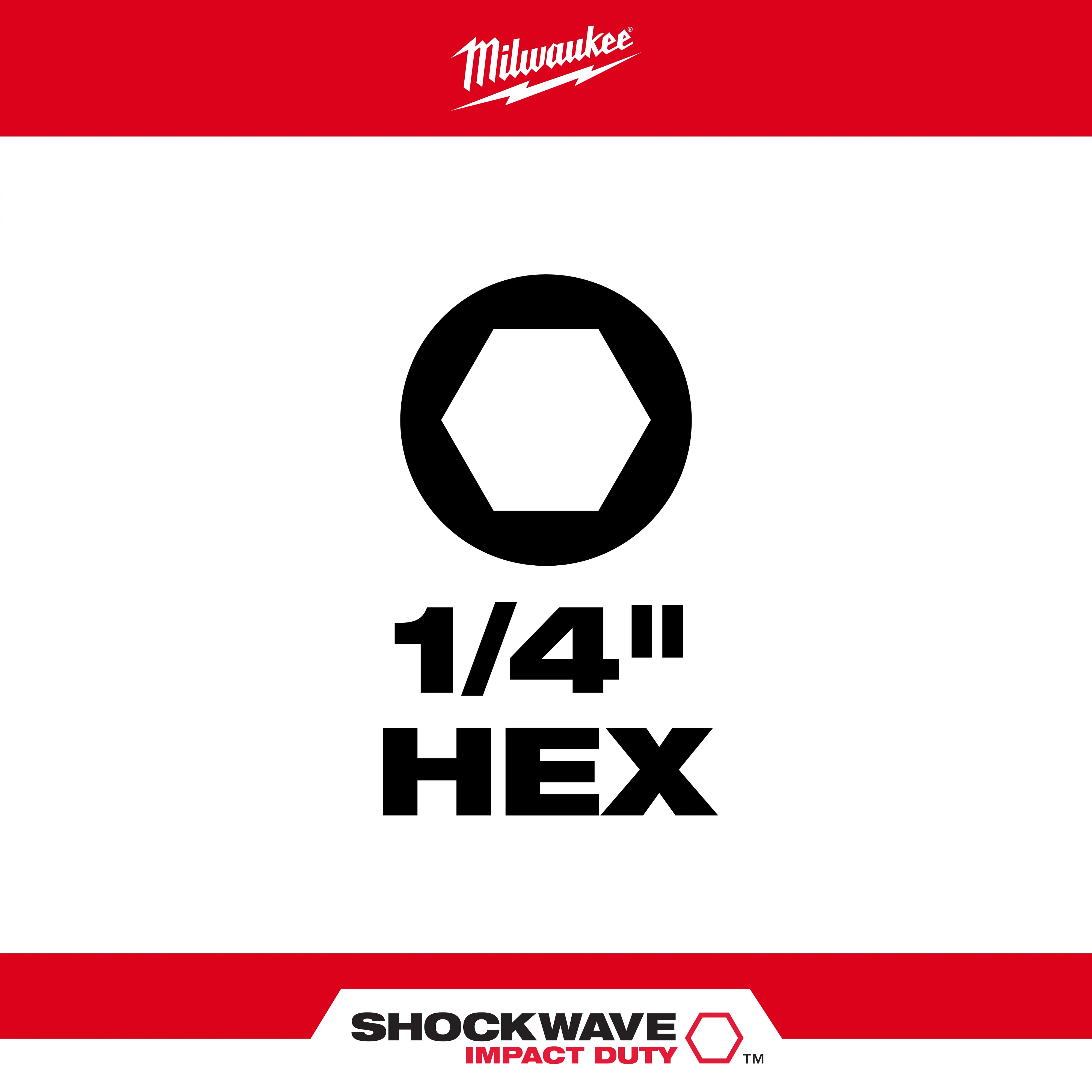 Milwaukee® SHOCKWAVE™ Impact Duty™ Impact Insert Bit, 1/4 in Point, Hex Point, 1 in Overall Length, Hex Shank, Custom Alloy76™ Steel