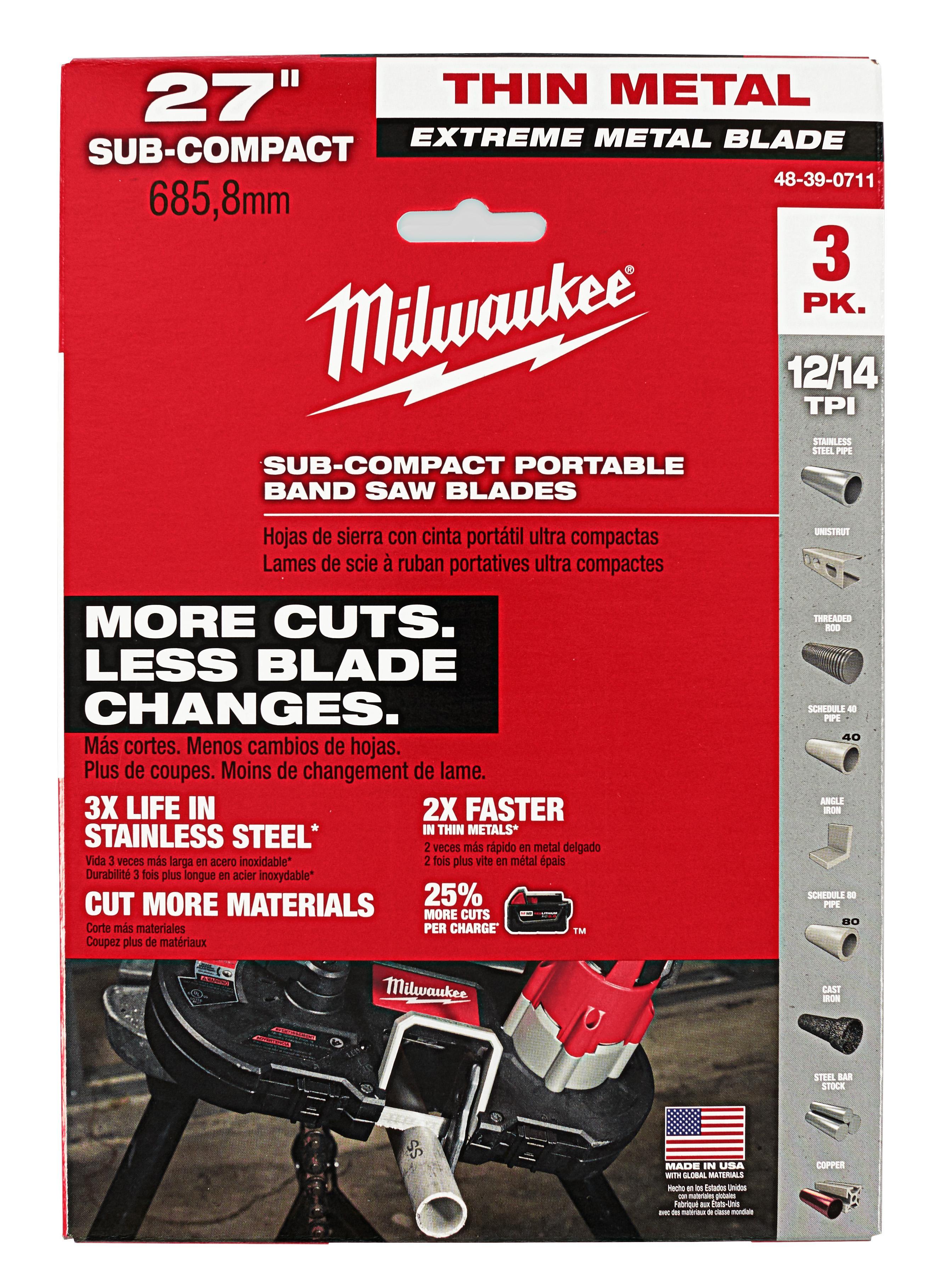 Milwaukee 48-39-0711 Sub-Compact Extreme Thin Metal Portable Band Saw Blade, 27 in L, 1/2 in W x 0.02 in THK, 12/14 TPI, Bi-Metal Body