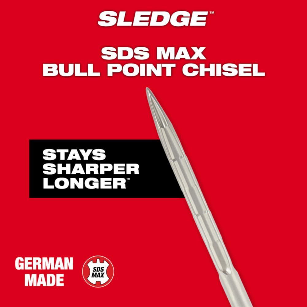 Milwaukee 48-62-4250 Self-Sharpening Hammer Chisel, SDS-Max Shank, 1-1/4 in W Blade, Bull Point, 16 in OAL