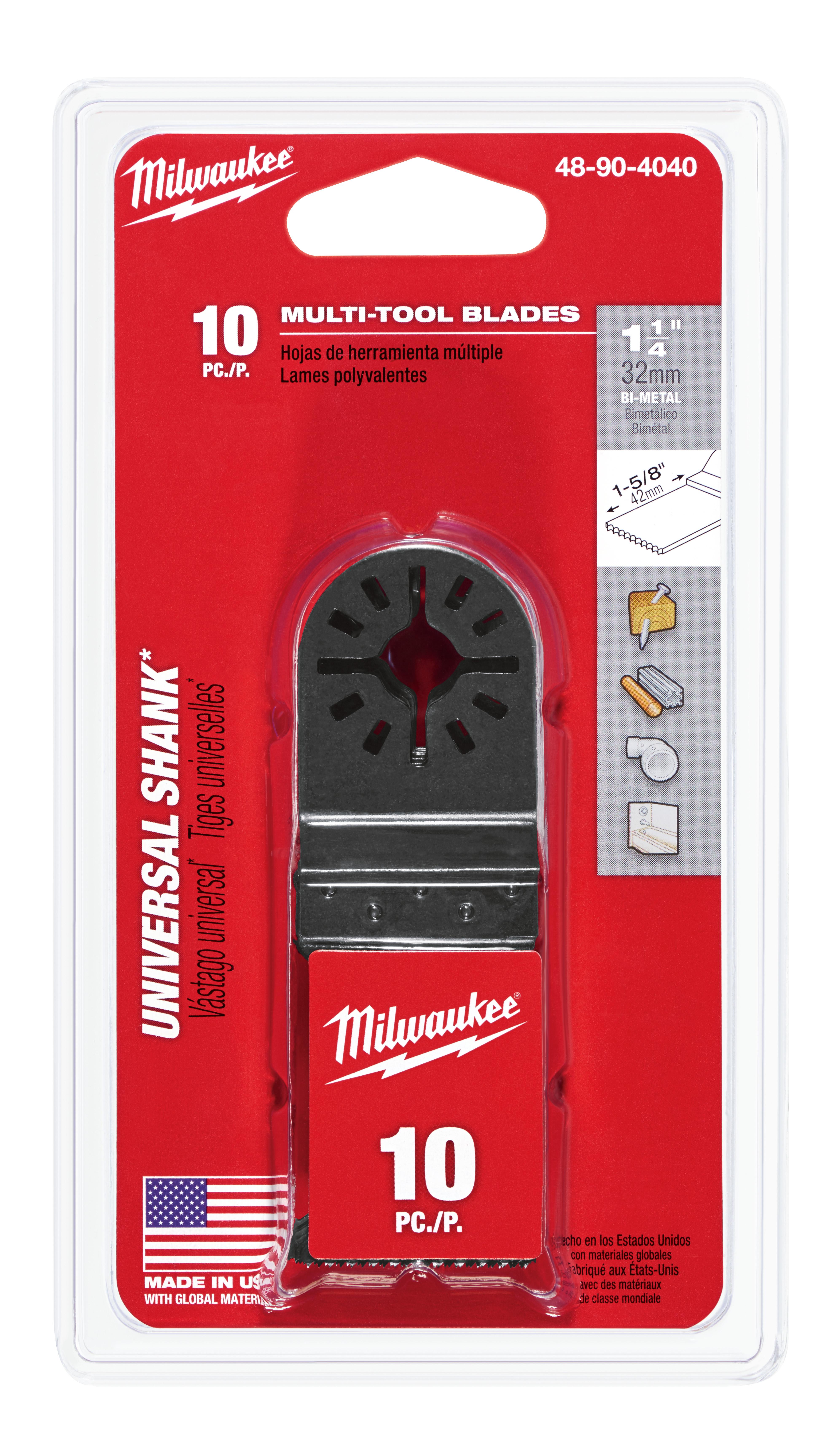 Milwaukee® 48-90-4040 Multi-Tool Blade With Universal Shank, For Use With Milwaukee®, Bosch® (Non-Starlock™), SKIL®, Makita®, Craftsman®, Fein® (Non-Starlock™), Ridgid®, AEG®, Ozito® and Ryobi® Professional Grade Oscillating Multi-Tool, 1-1/4 in, Bi-Metal