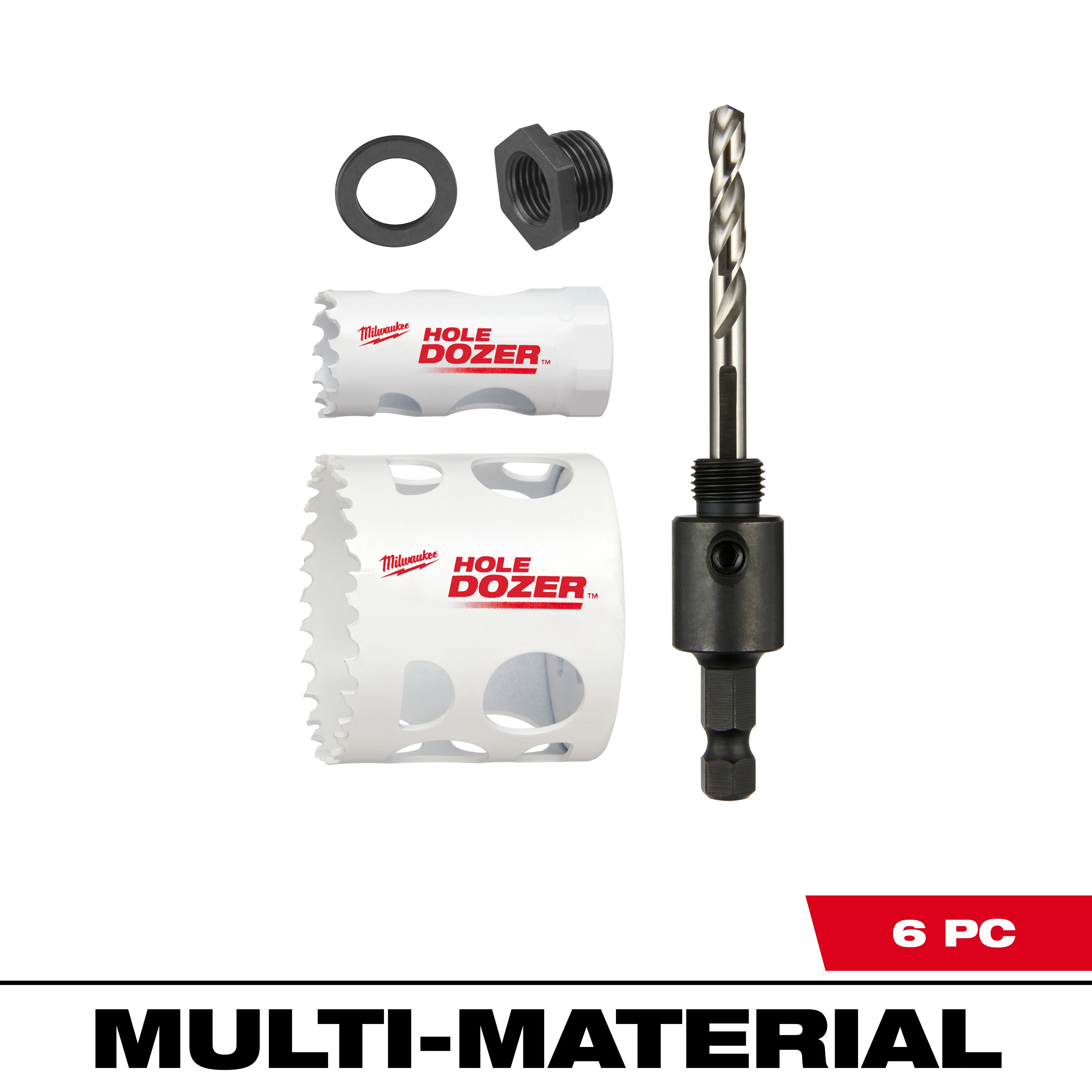 Milwaukee® Hole Dozer™ Ice Hardened™ Hole Saw Kit, Door Lock, 5 Piece, 4/6 TPI, For Use With: 49-56-7210, 49-56-7240, 49-56-7250 and 49-56-9100 Quick-Change Arbor, Bi-Metal/HSS