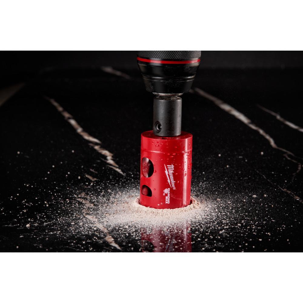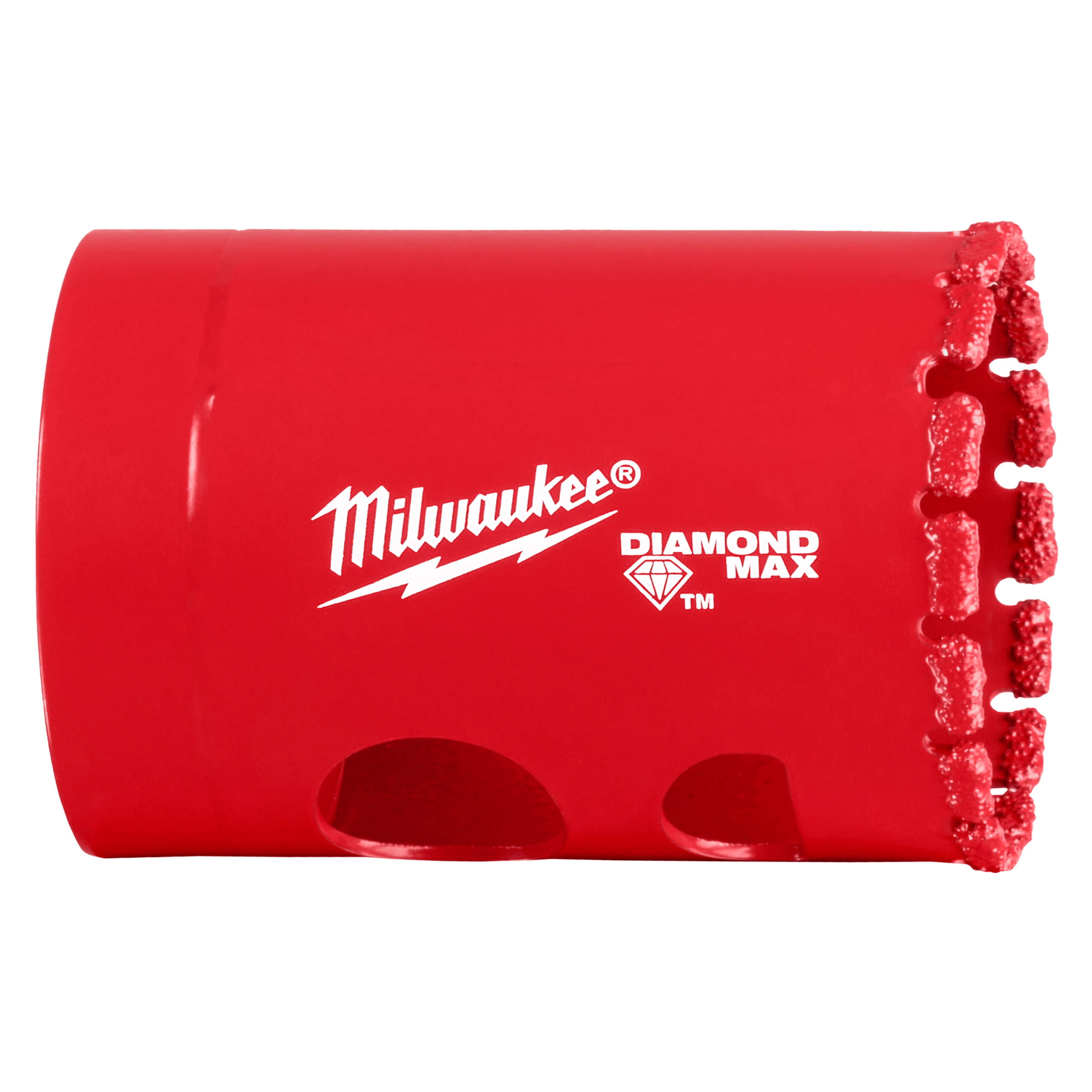 Milwaukee® Diamond Plus™ Hole Saw, Series: 49-56, 1-3/8 in Diameter, 1-1/2 in Cutting Depth, 4 TPI, 1/4 x 2 in Drill, Diamond Grit Cutting Edge, 1/2 in Chuck, Hex Shank, 7/16 in Shank, Use Arbor: 49-56-7105 and 49-56-7135, Applicable Materials: Glass, Stone and Tile
