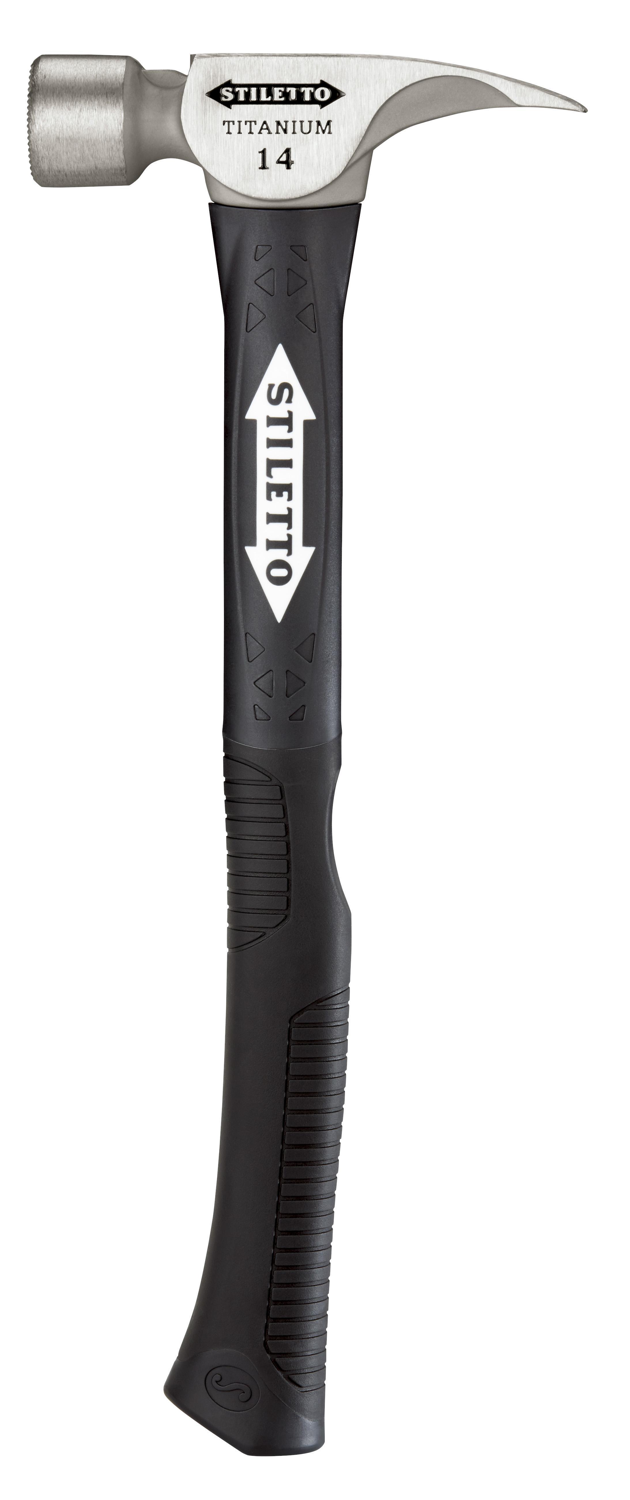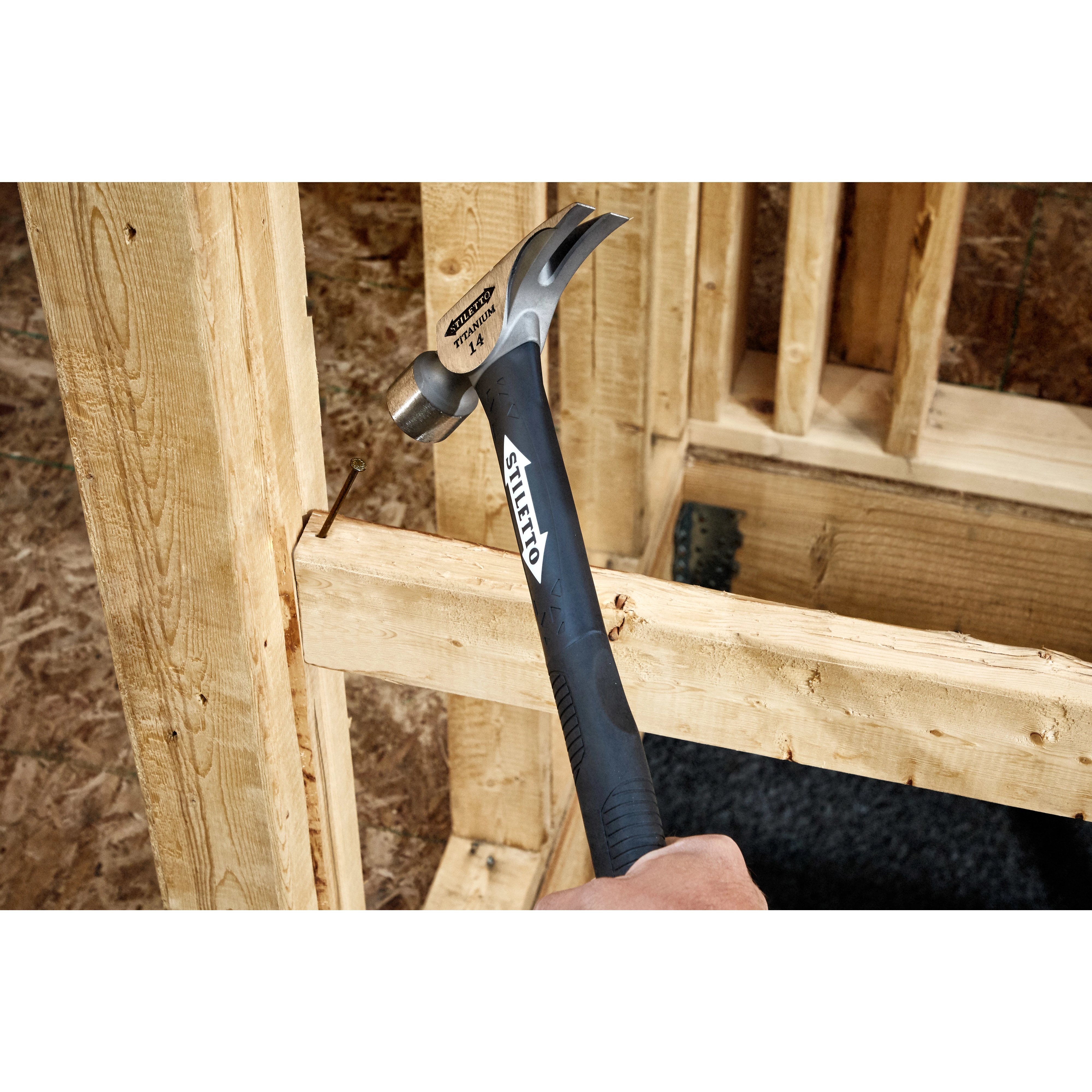 Stiletto®, TI14SC-F, Framing Hammer, Nailing, 16 in Overall Length, Smooth Face, 2 in Diameter Face, 14 oz Head, Titanium Head, 6 in Head Length, Curved Handle, Fiberglass Handle, Ergonomic/Non-Slip Grip, Straight Claw Style