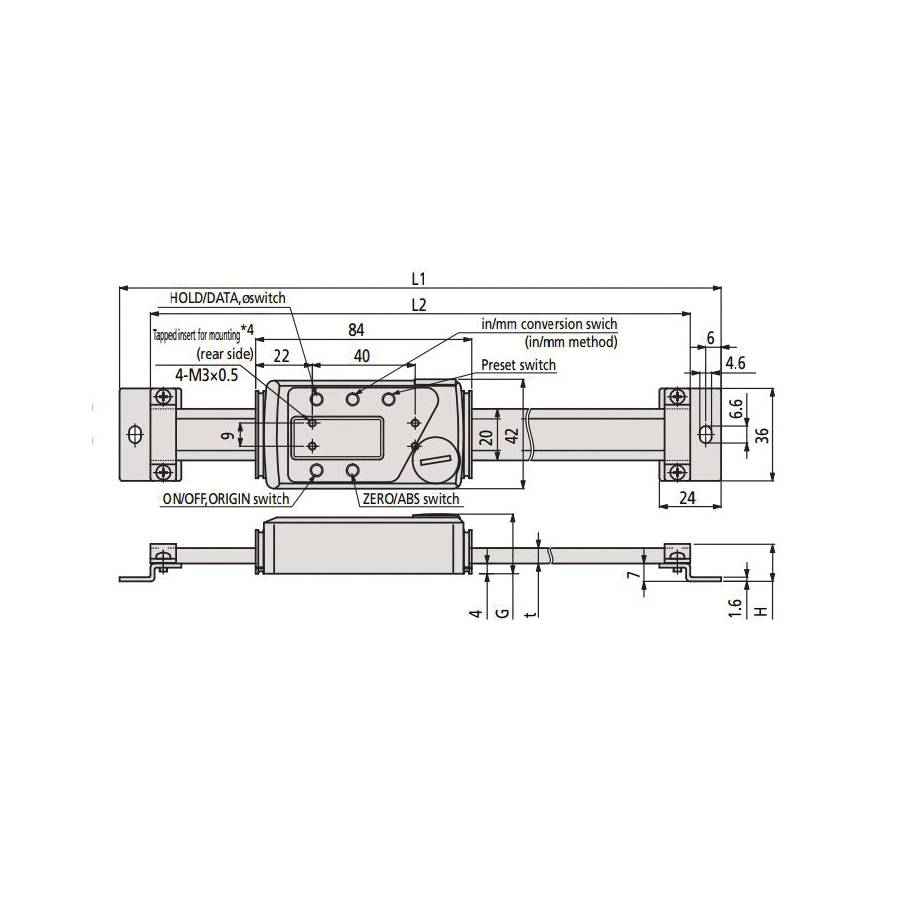 Mitutoyo ABSOLUTE® Digimatic Scale Unit, Imperial/Metric Multi-Function Vertical, Series: 572, 0 to 18 in, 0.002 in Accuracy, 0.0005 in Resolution, LCD Display, 594 mm Overall Length, 570 mm Beam Length