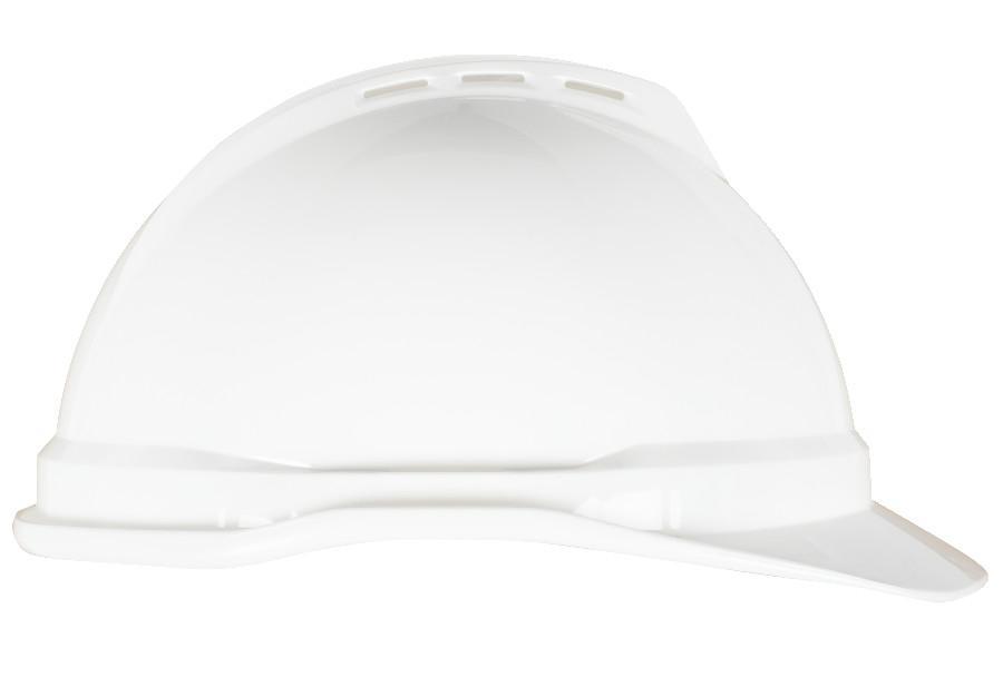 MSA V-Gard 10034018 500 Front Brim Vented Hard Hat, 6-1/2 Fits Mini Hat, 8 Fits Max Hat, Polyethylene, 4-Point Fas-Trac III Suspension, ANSI Electrical Class Rating: Class C, ANSI Impact Rating: Type I, Ratchet Adjustment