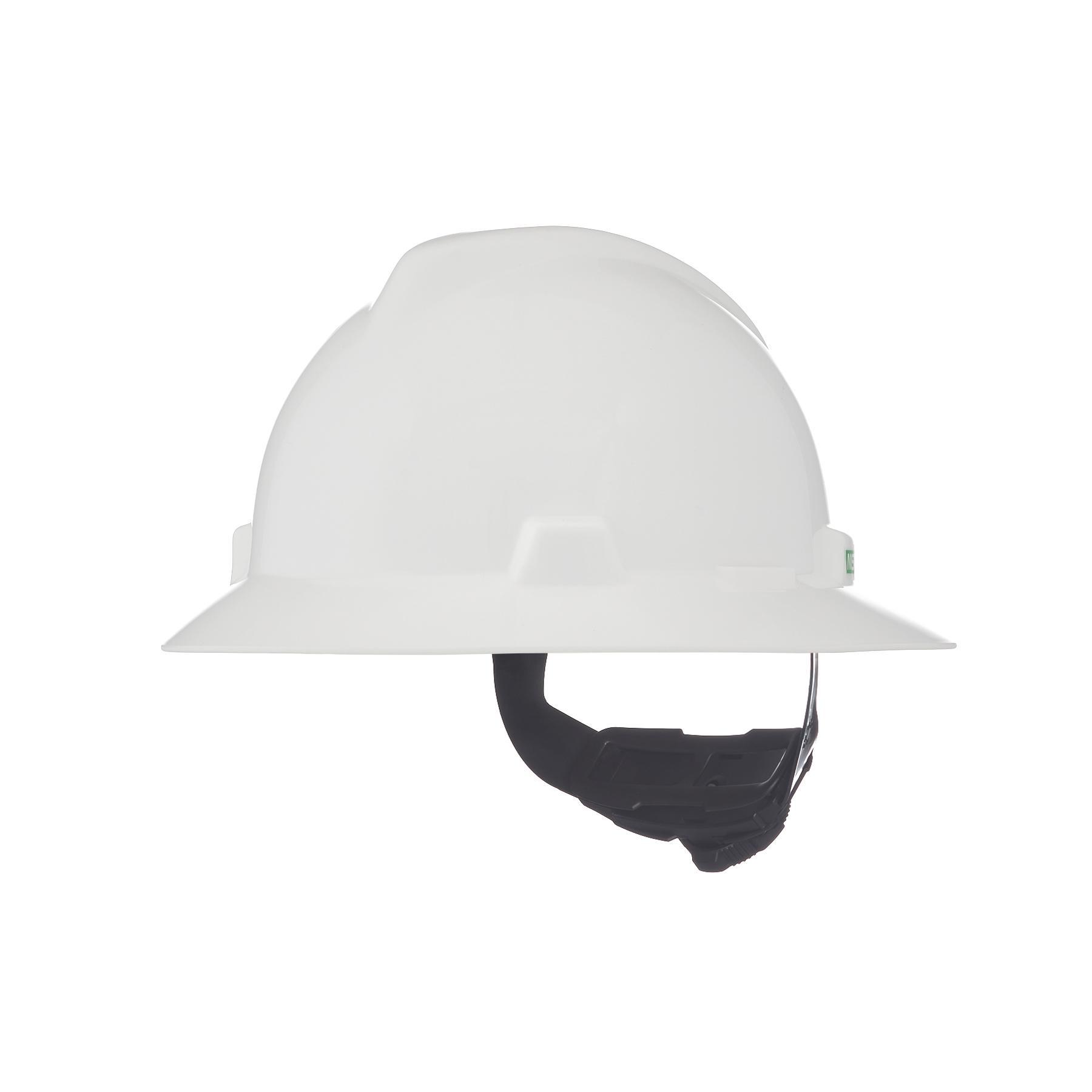 MSA V-Gard 475369 Full Brim Hard Hat, SZ 6-1/2 to 8 Fits Mini Hat, Polyethylene, 4-Point Fas-Trac III Suspension, ANSI Electrical Class Rating: Class E, ANSI Impact Rating: Type I, Ratchet Adjustment